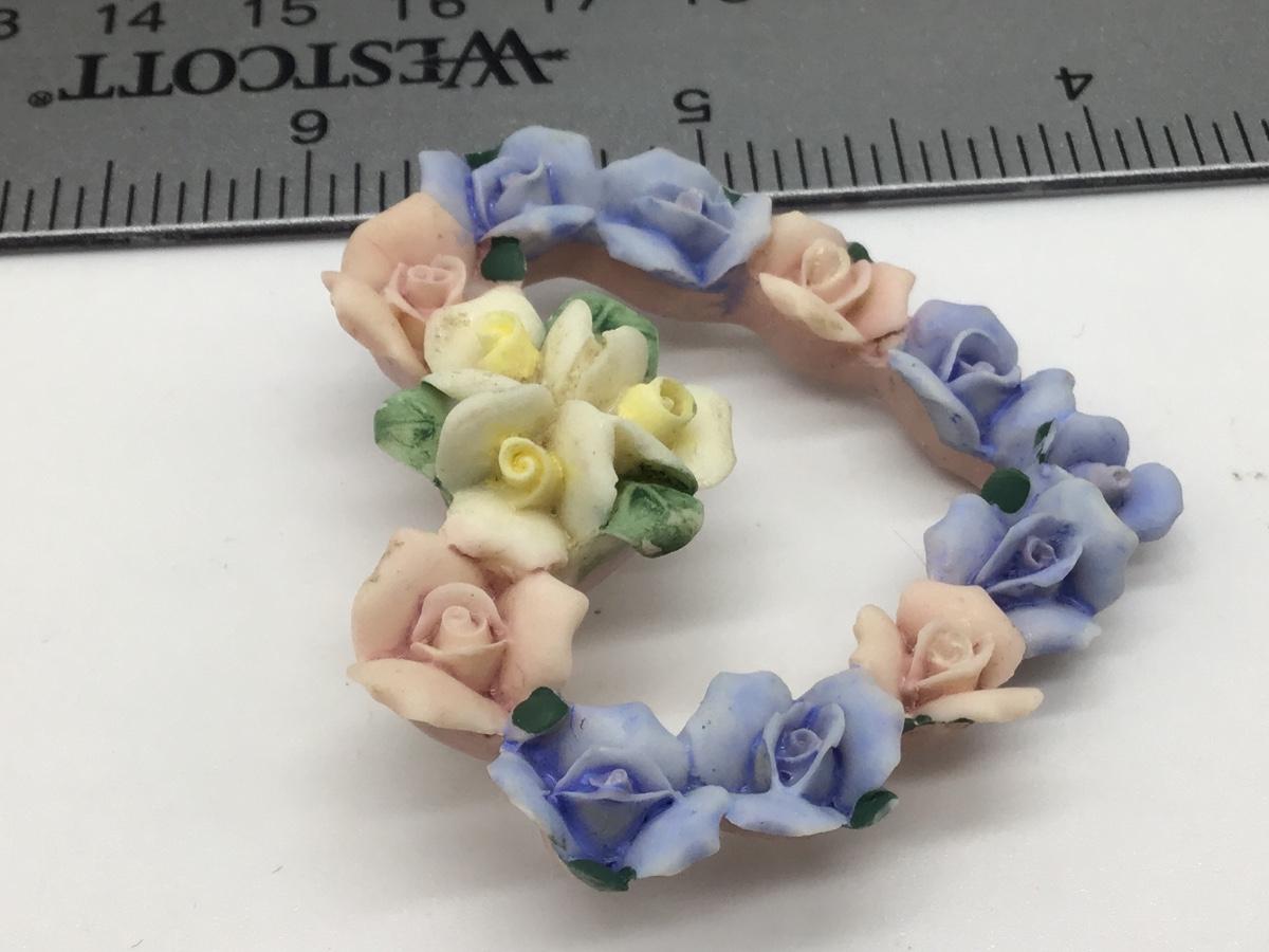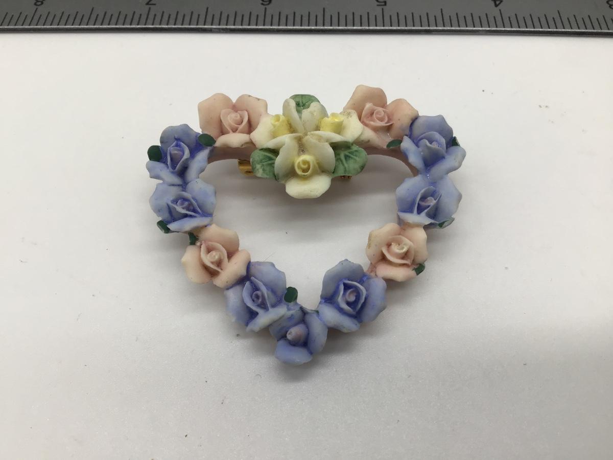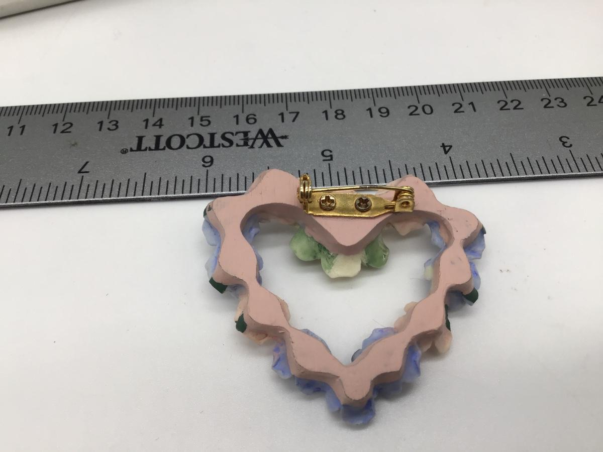 MOLDED LARGE PIN HEART WITH FLOWERS PINK BLUE WHITE VINTAGE