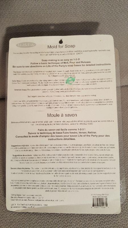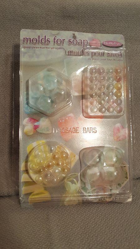 This lot is for the person who is ready for some good, clean fun. The mold has 4 designs and is labeled for use when making massage soap bars. The mold measures about 8-inches X 11-inches. Donated by Diann Nance.