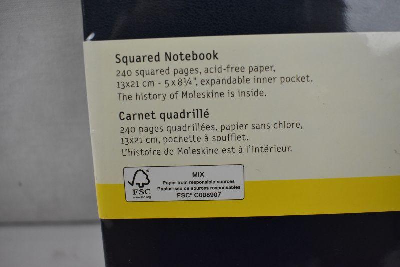 Moleskine Classic Squared Large Notebook, Hard, Sapphire Blue, 5 x 8.25" - New