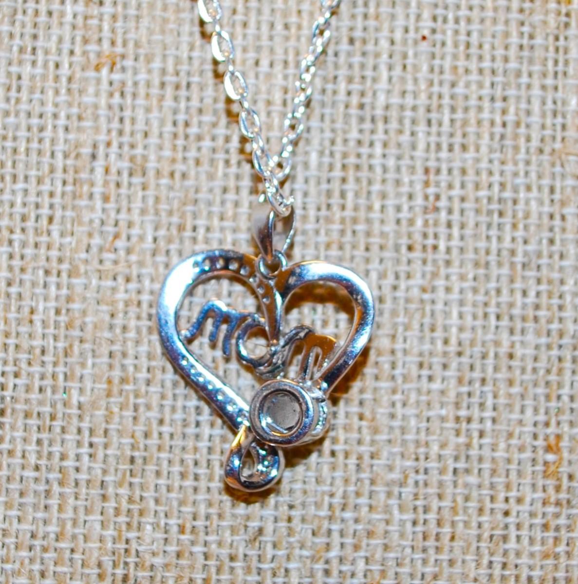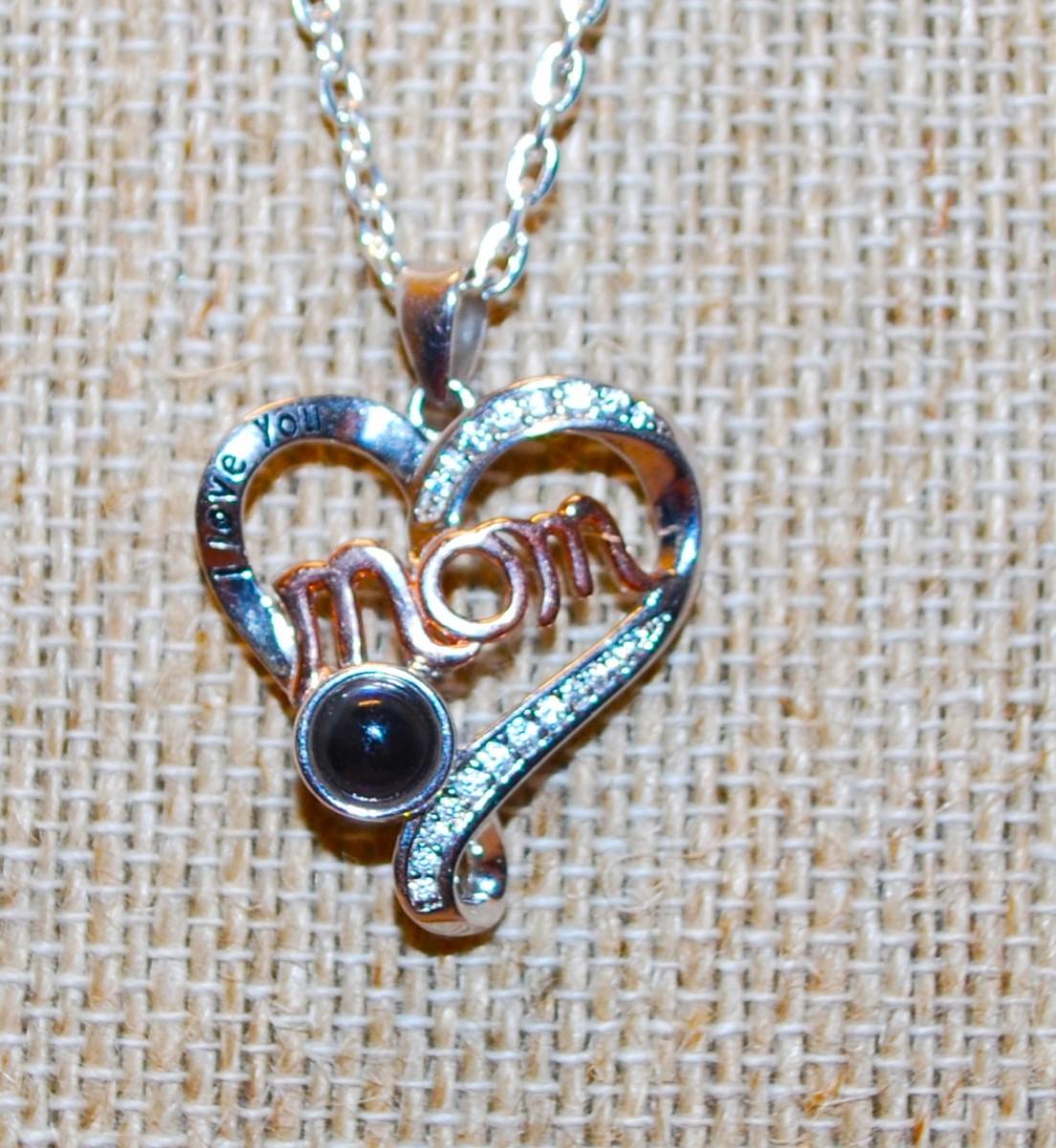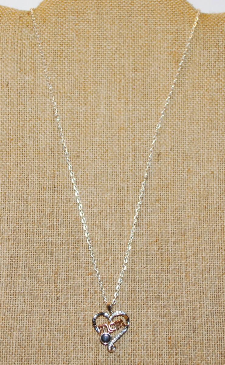 "Mom Love You" Heart .925 Silver PENDANT (1" x ¾') on a Silver Tone Necklace Chain 18" L