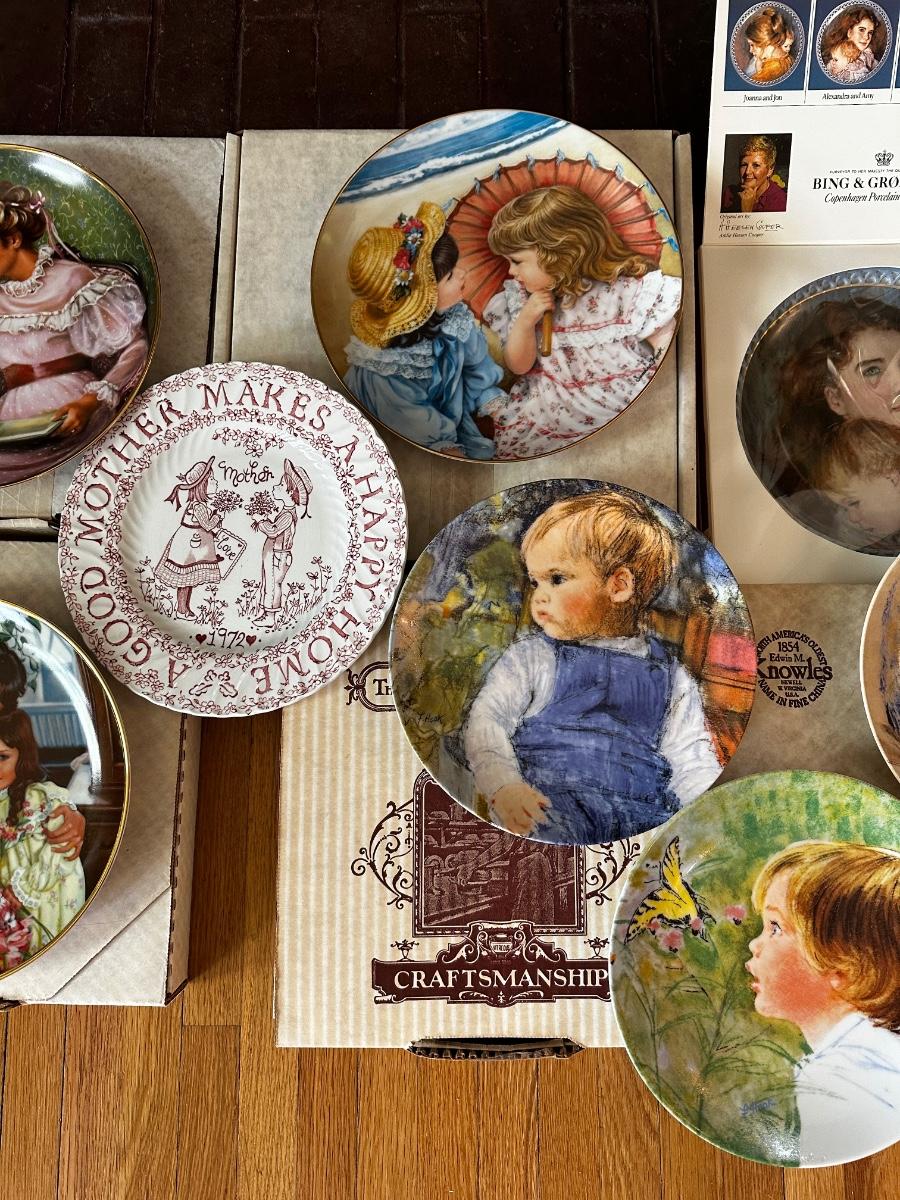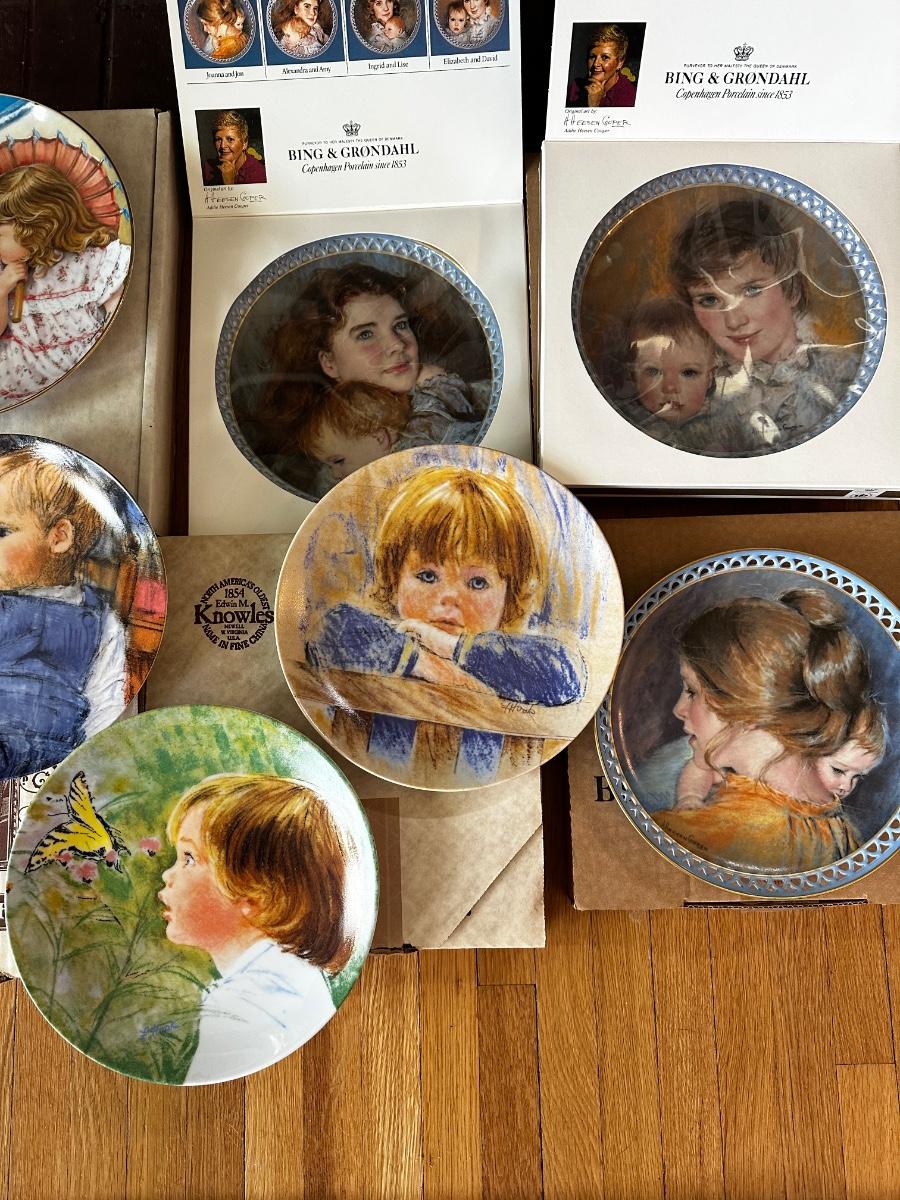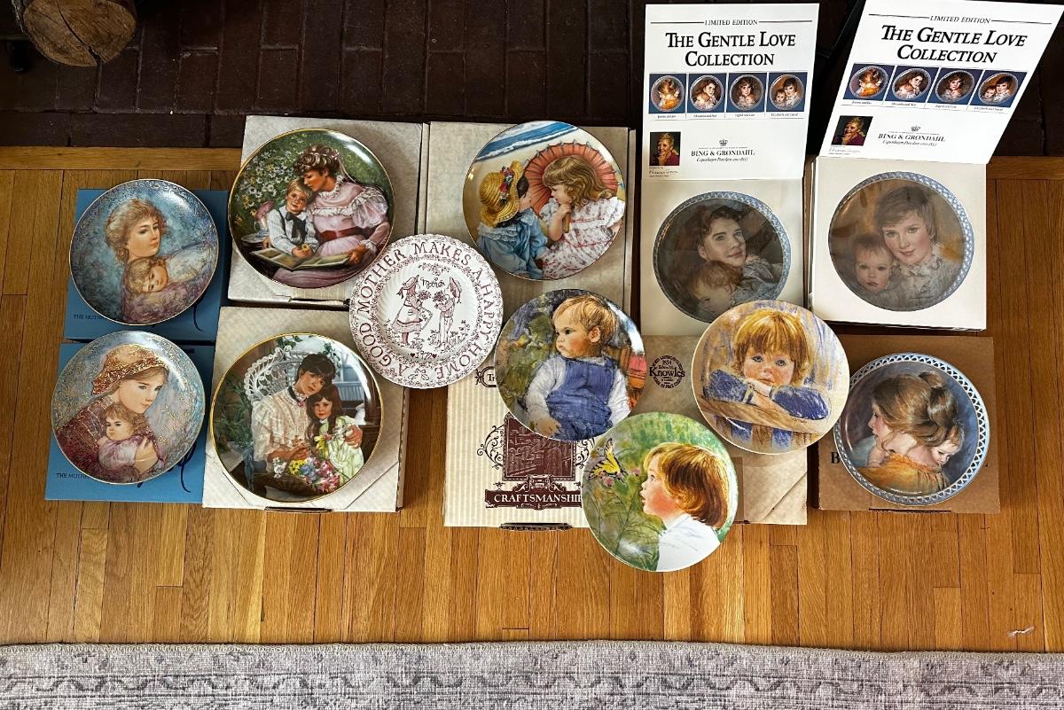 Hibel, Frances Hook legacy, and the gentle love collection. This lot of 12 plates is all about kids and kids and their moms.