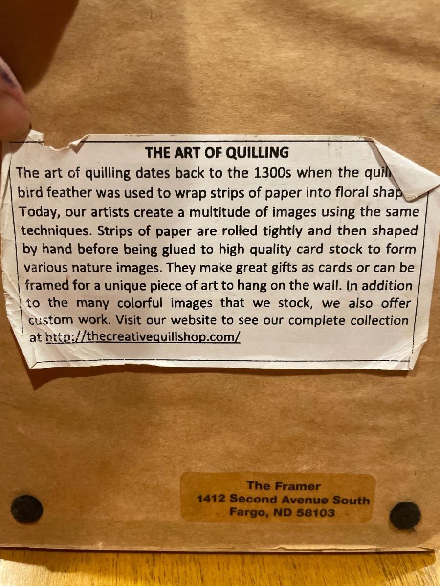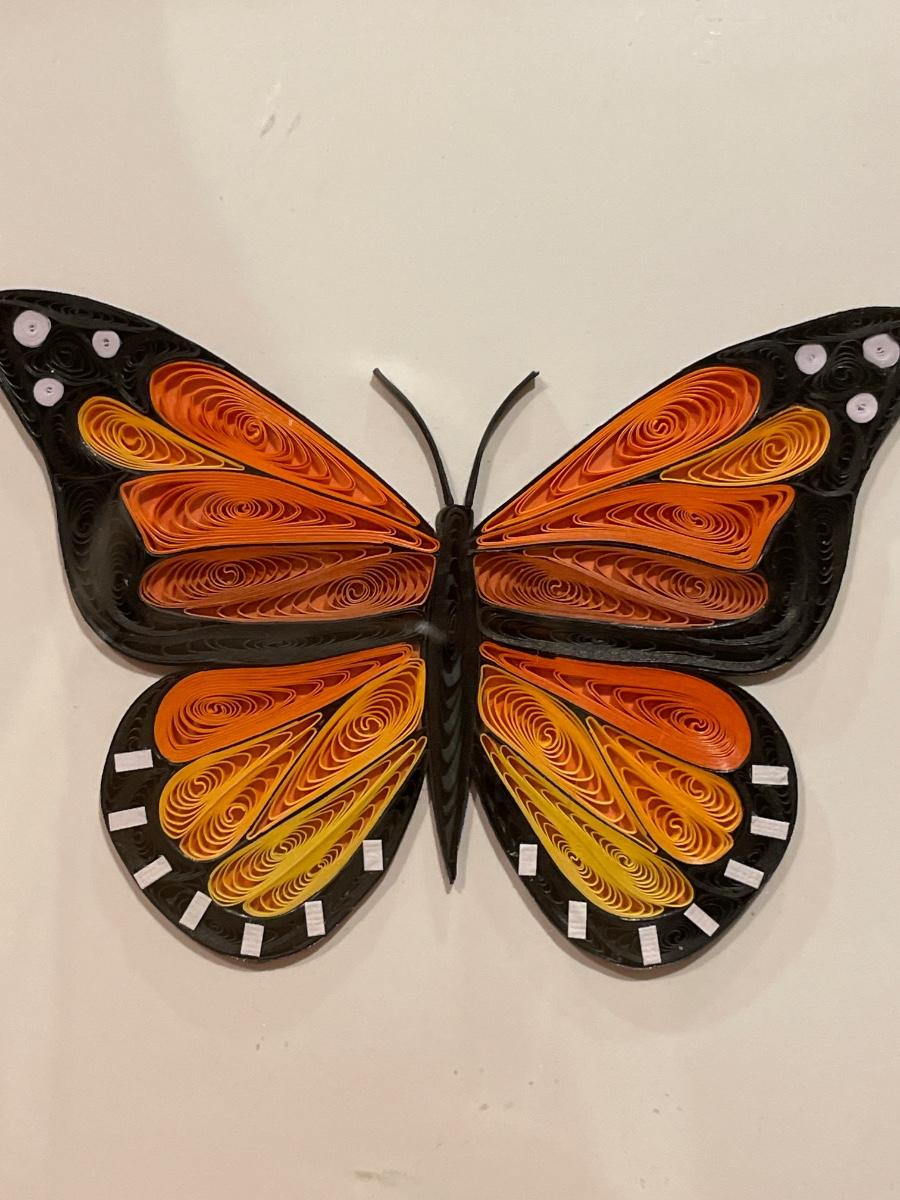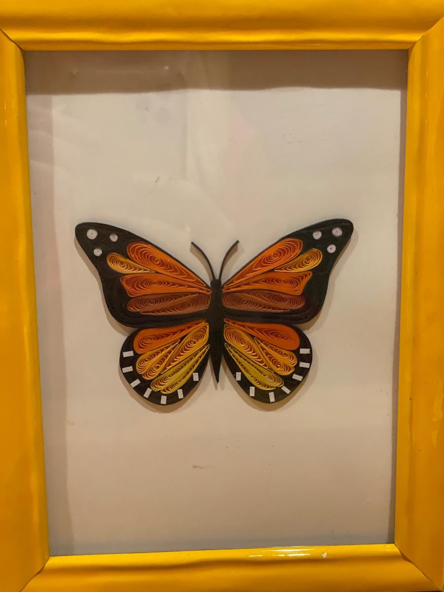 8.5” x 6.5” yellow framed handmade quilling butterfly