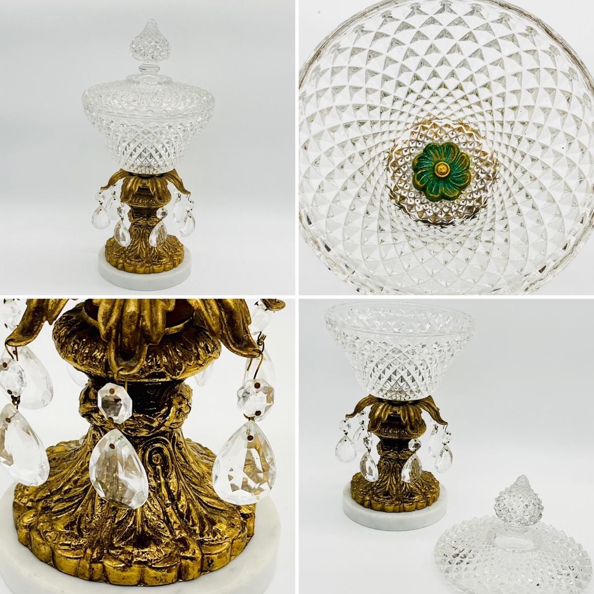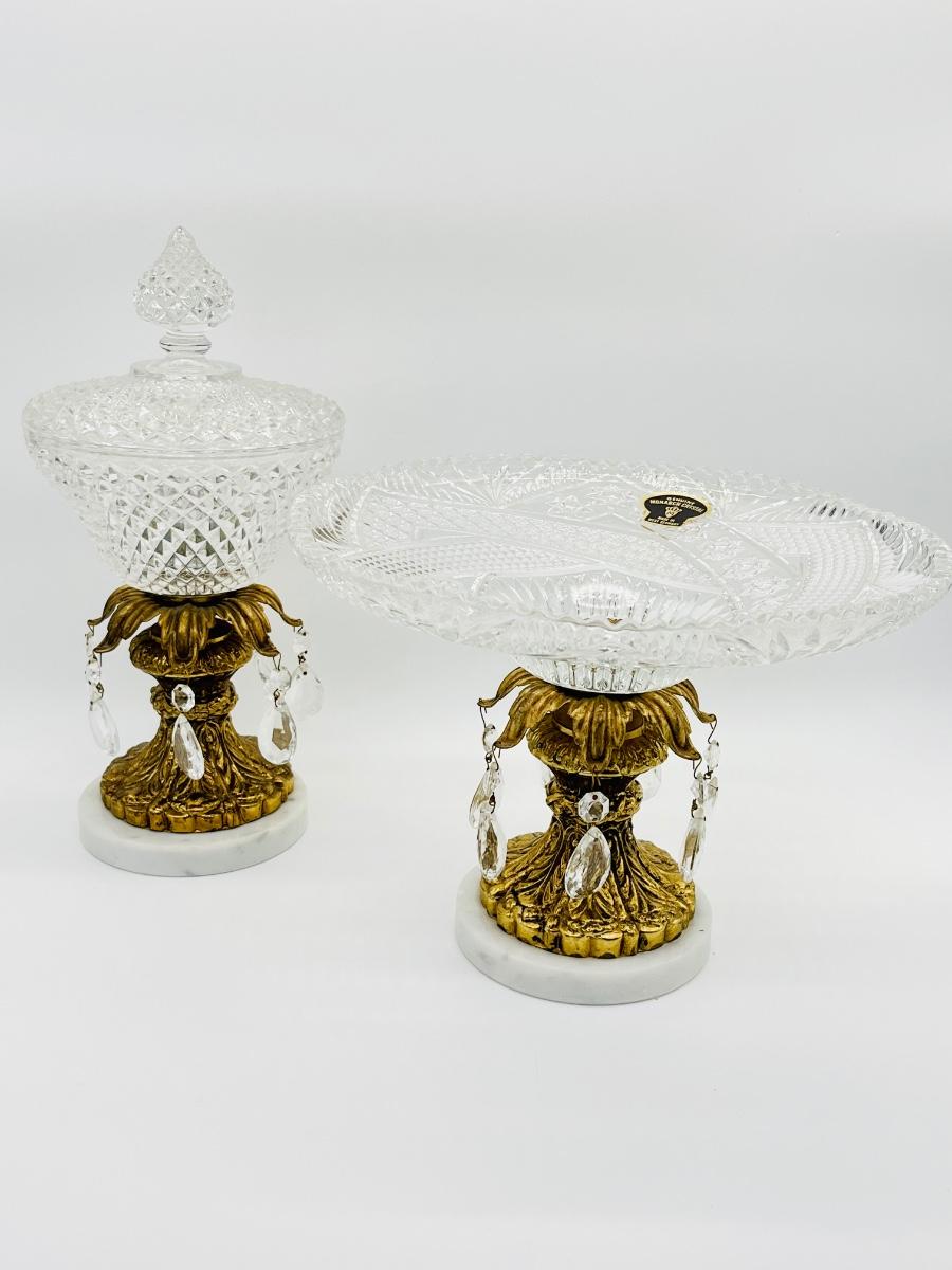 MONARCH CRYSTAL ~ Vtg. Brass Pedestal Tray & Lidded Jar
