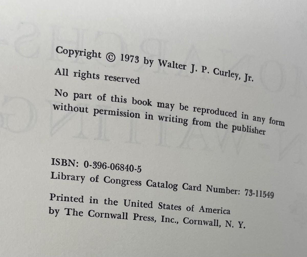 Description: Monarchs In Waiting by Walter J. P. Curley, Jr. copyright 1973; Material: Paper