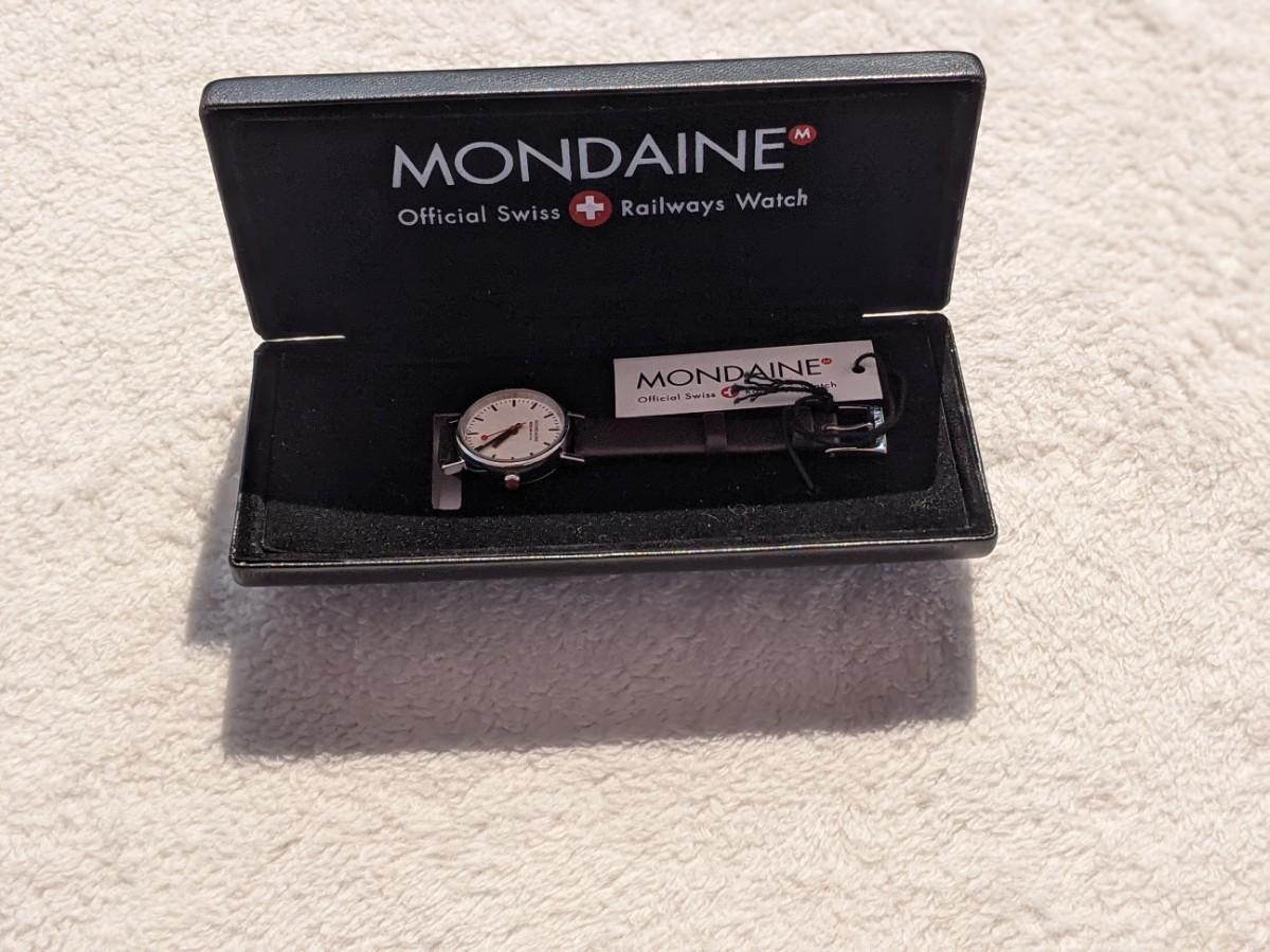 Mondaine Women's A658.30301.11SBC Quartz Evo Leather Band Watch is brand new in the original box.