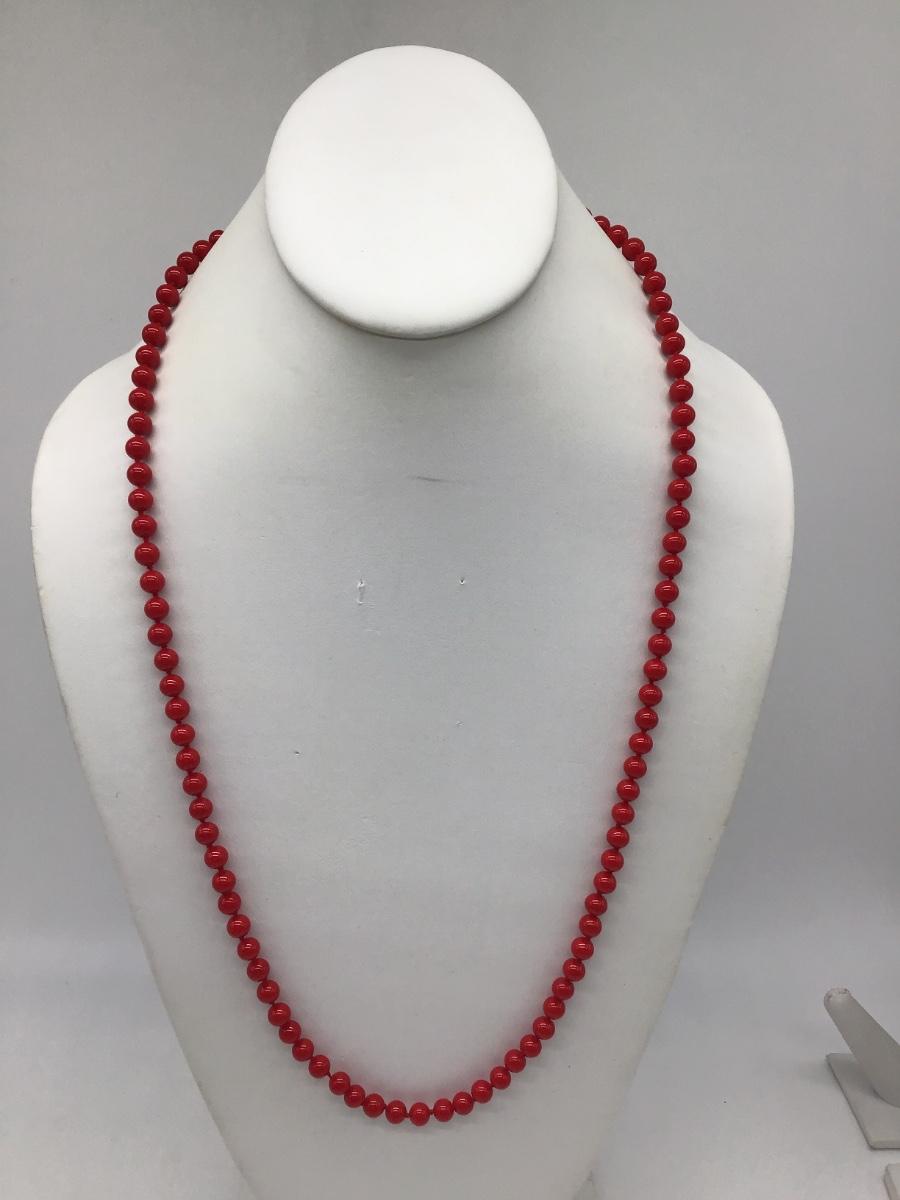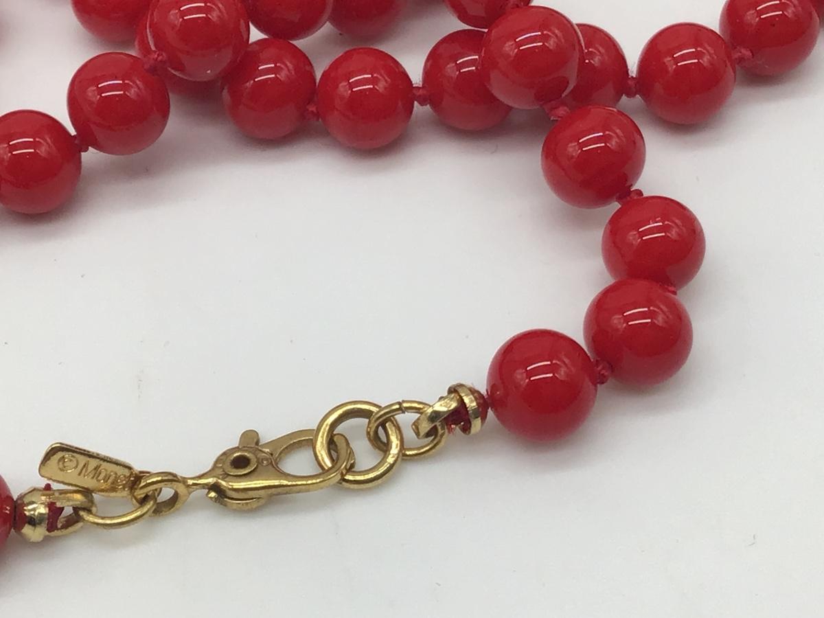 Monet Gold Tone Hand Tied Marbled Red Glass Bead Strand Fashion Necklace ¤¶