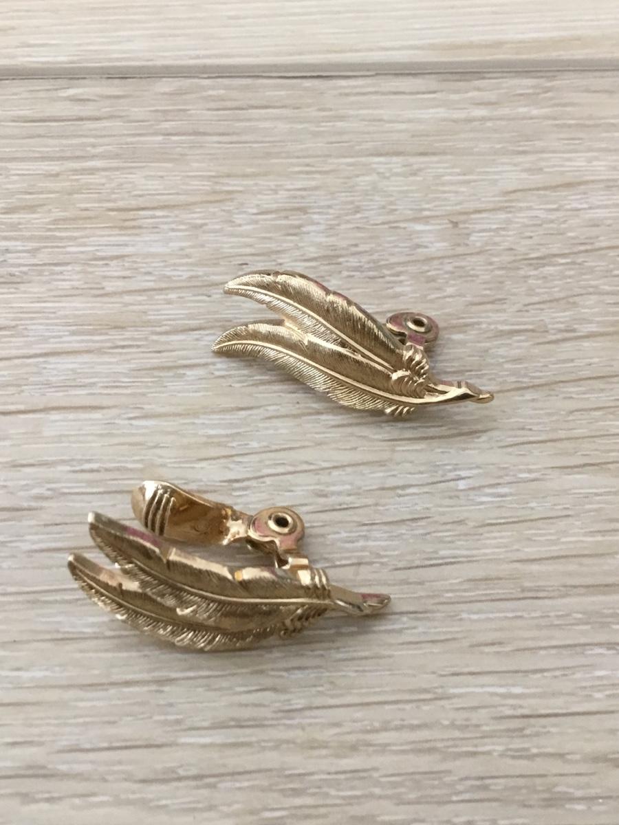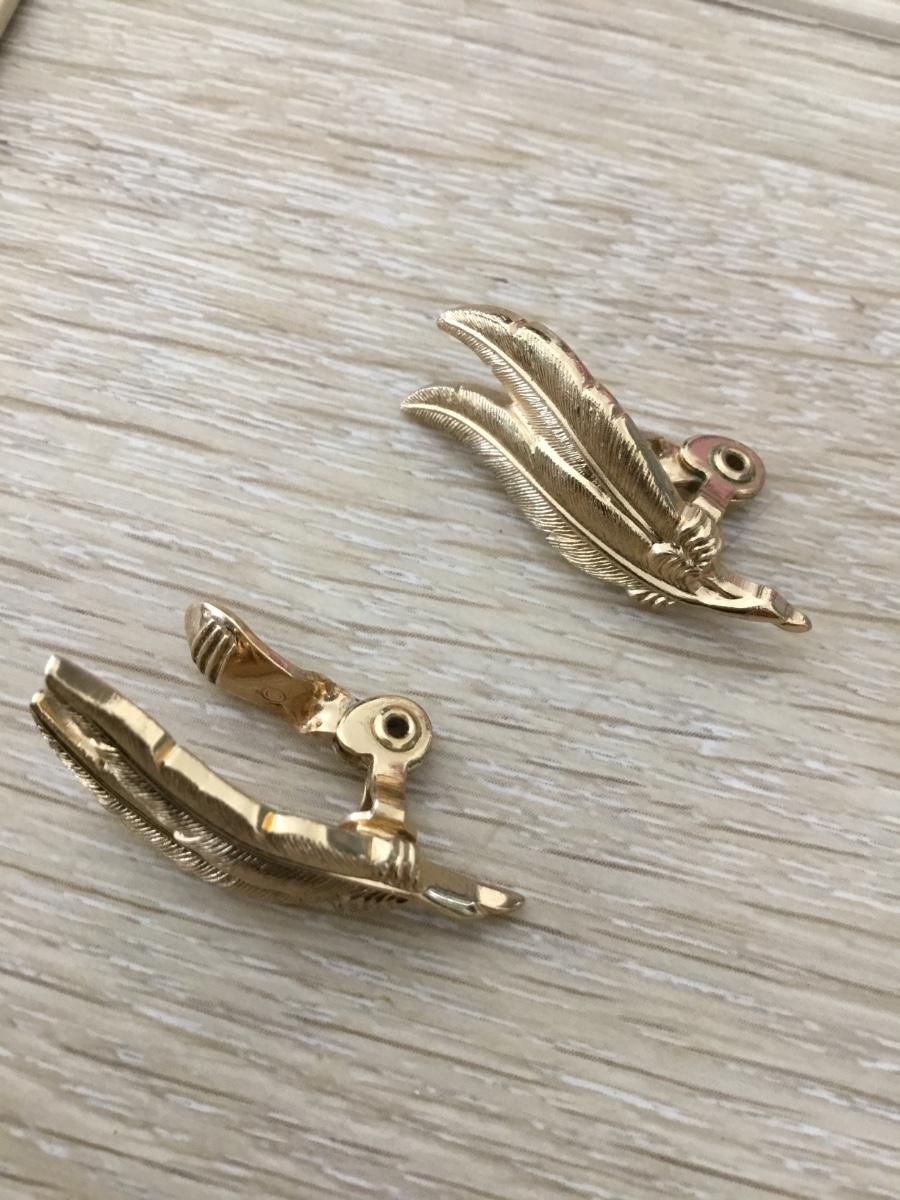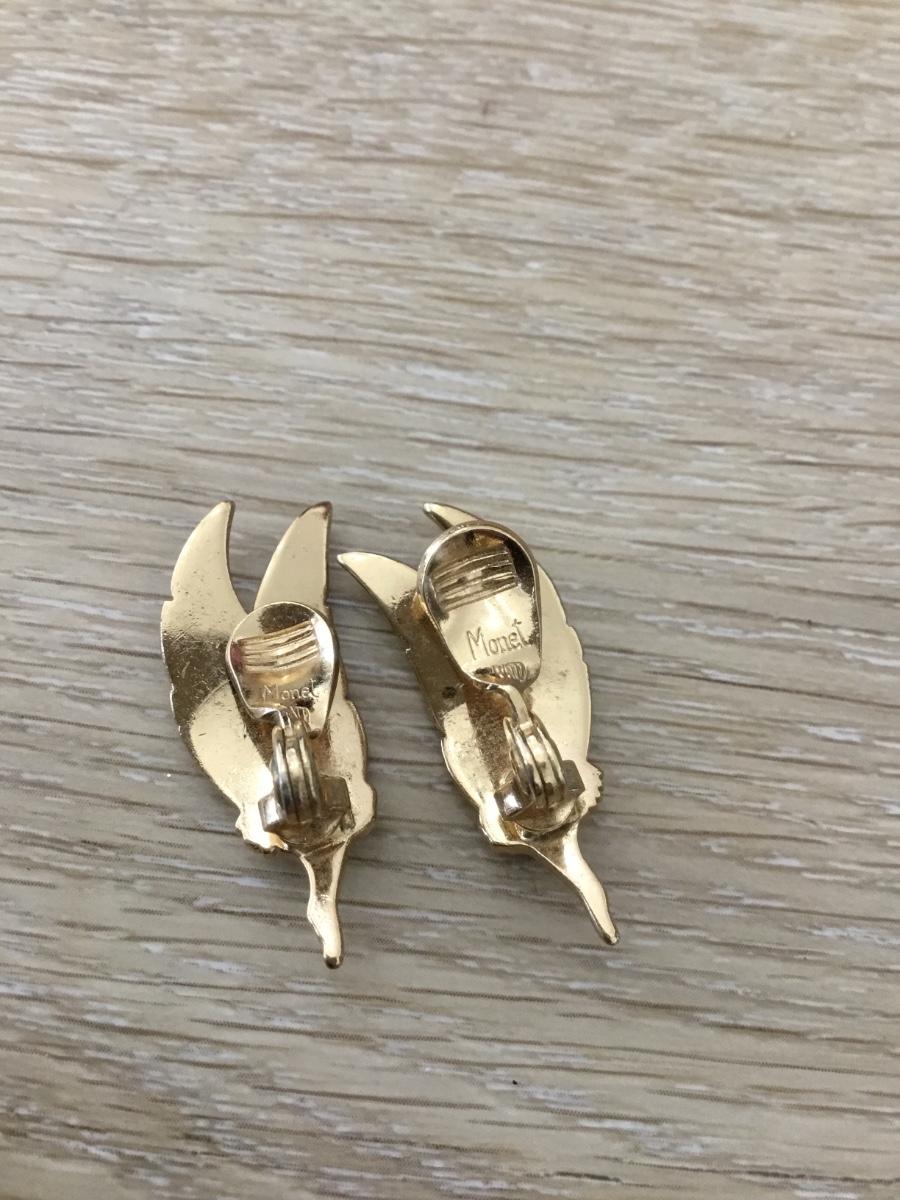 Monet gold tone leaf vintage clip on earrings