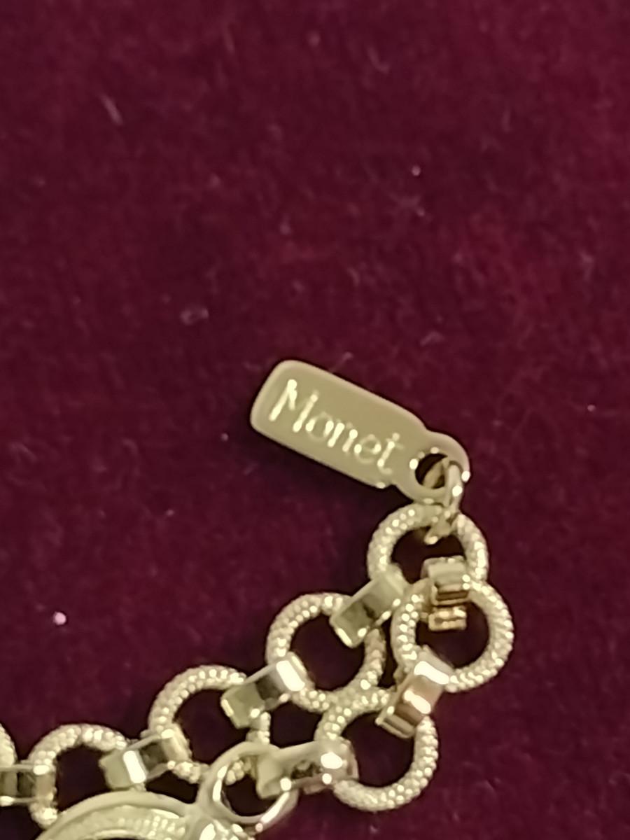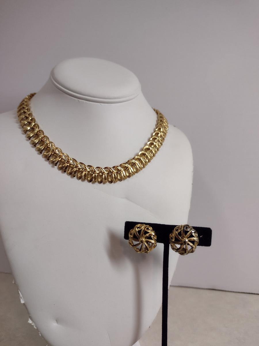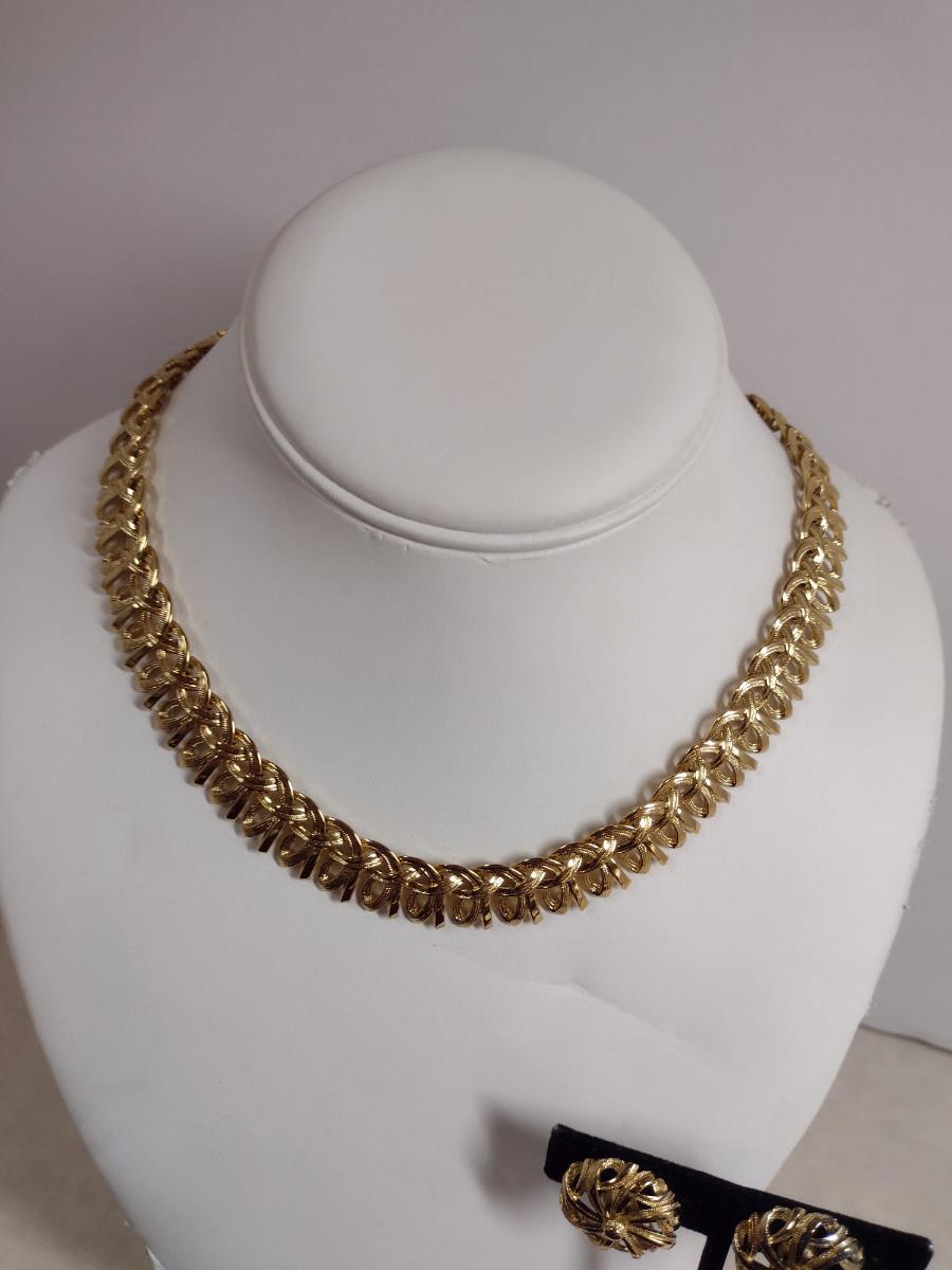 Monet Gold Tone Necklace and Earring Set (#27). Necklace is approx 16" long. Earrings are clip-on.