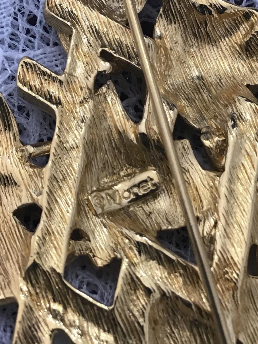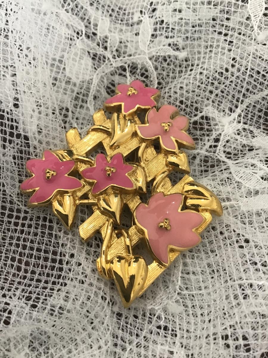 Monet gold tone pink flowers pin