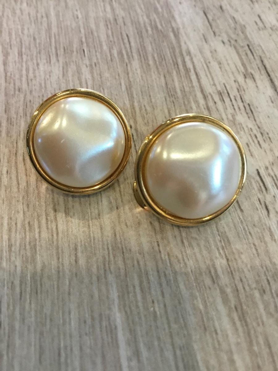 Monet marked gold tone vintage clip on earrings