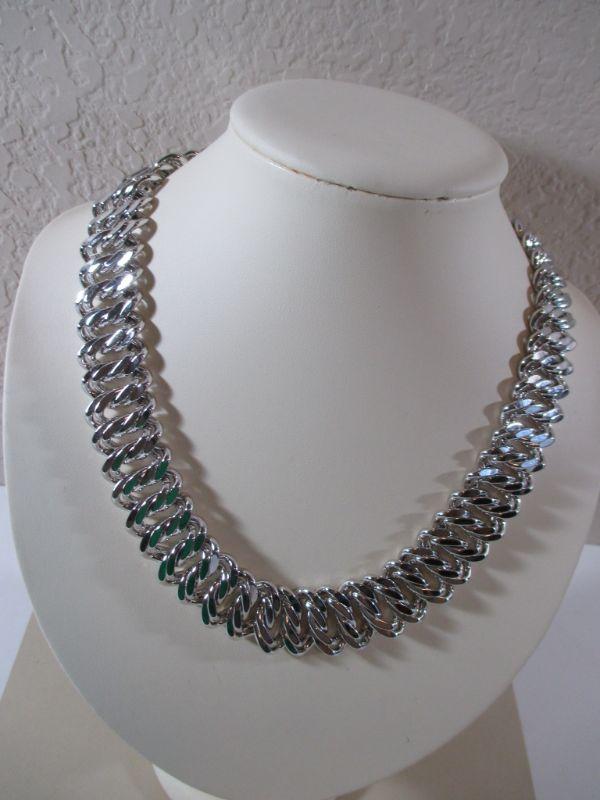 Monet Silver Vintage Chain Link Choker 9" clasp signed