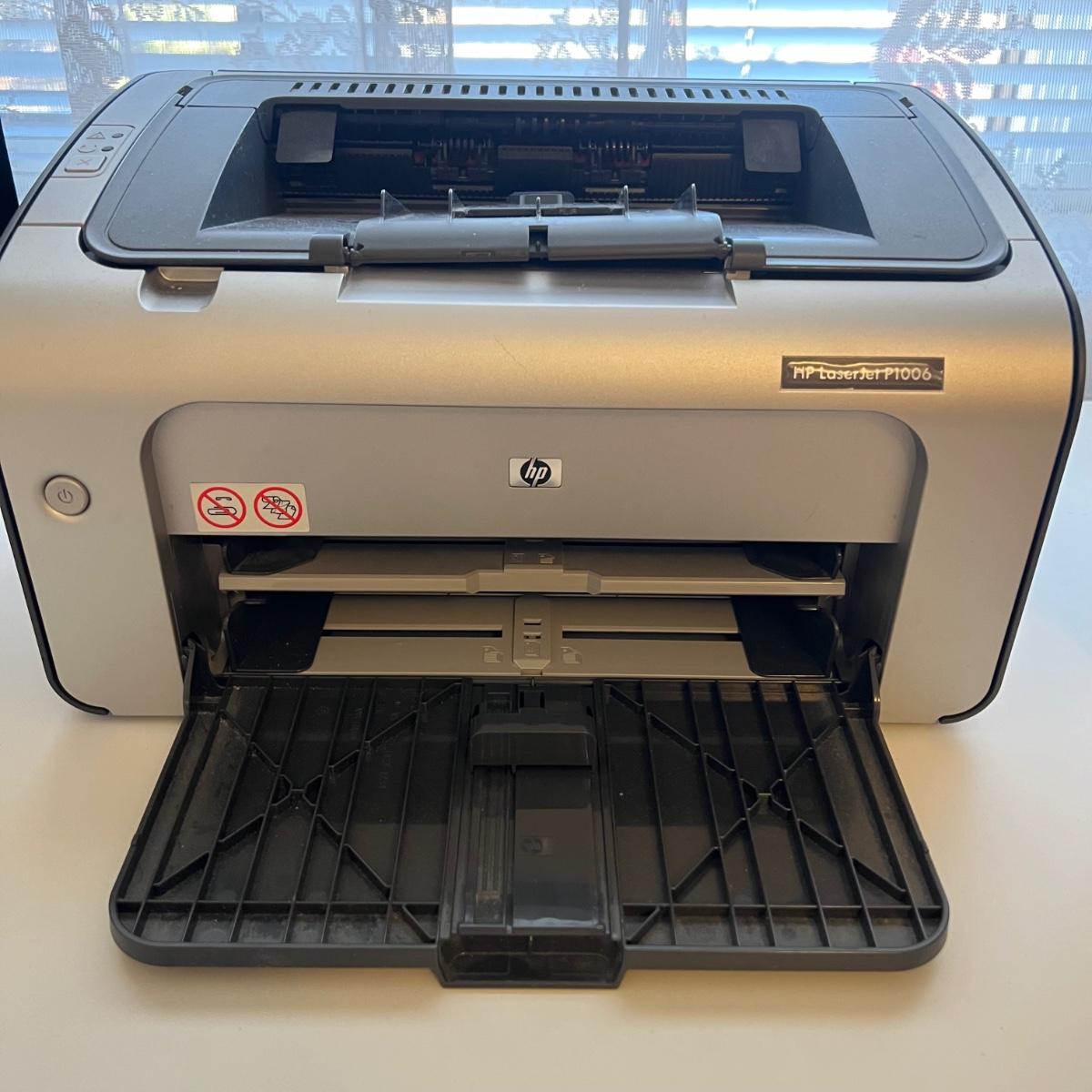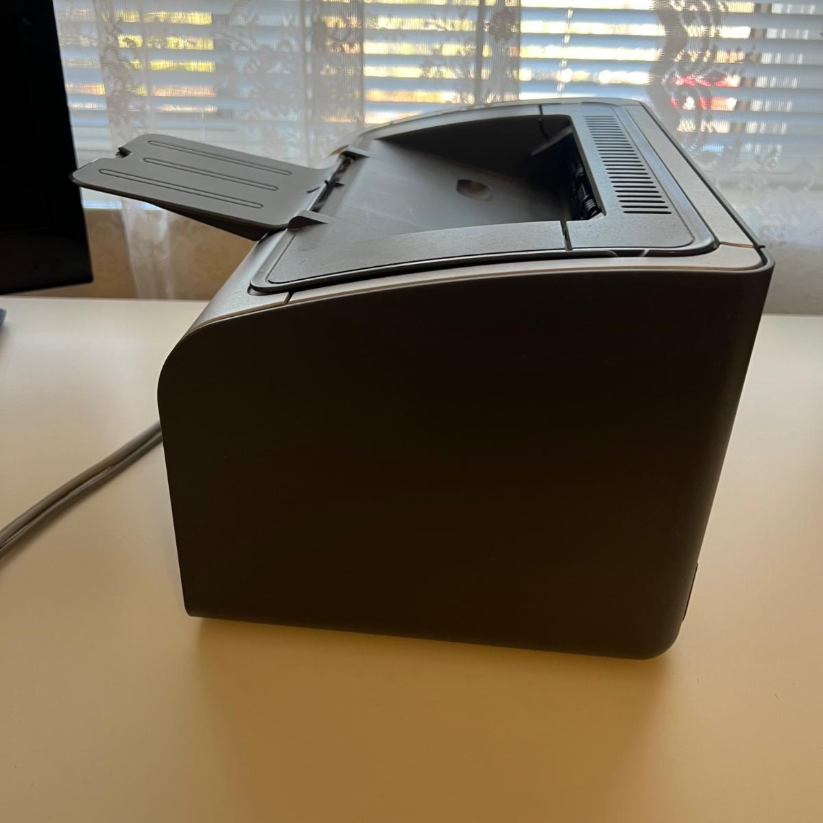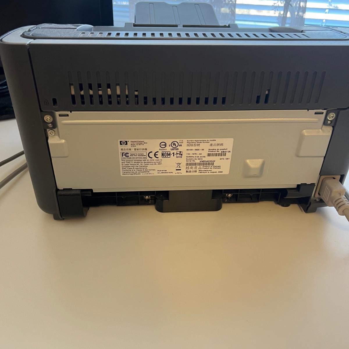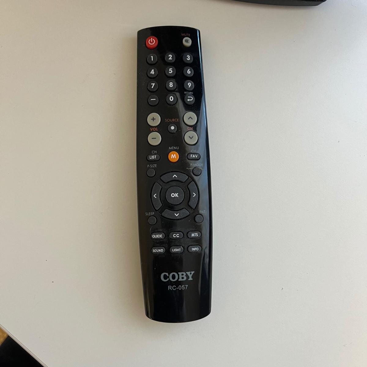 Coby 19" TV also able to function as a monitor measures 18” x 7” (base) x 12”H. The unit comes with a remote control. HP LaserJet P1006 printer measures 14” x 8.75” x 8”H. The Techko shredder measures 12” x 6” x 15”H. All equipment powered on when plugged in.