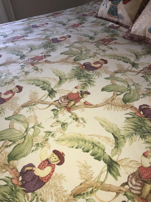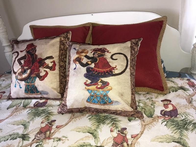 Queen size monkey duvet, 2 monkey pillows, 2 red pillows. Non smoking/no pet home.