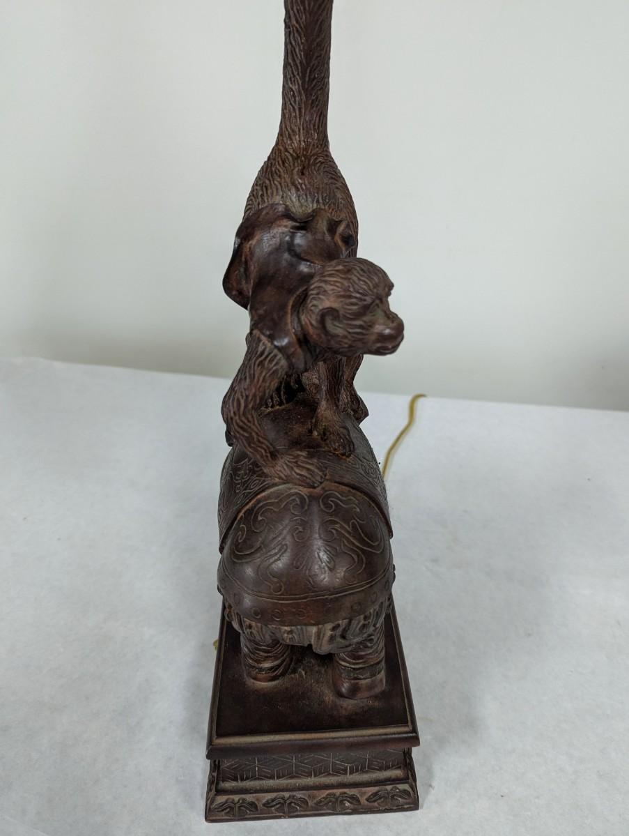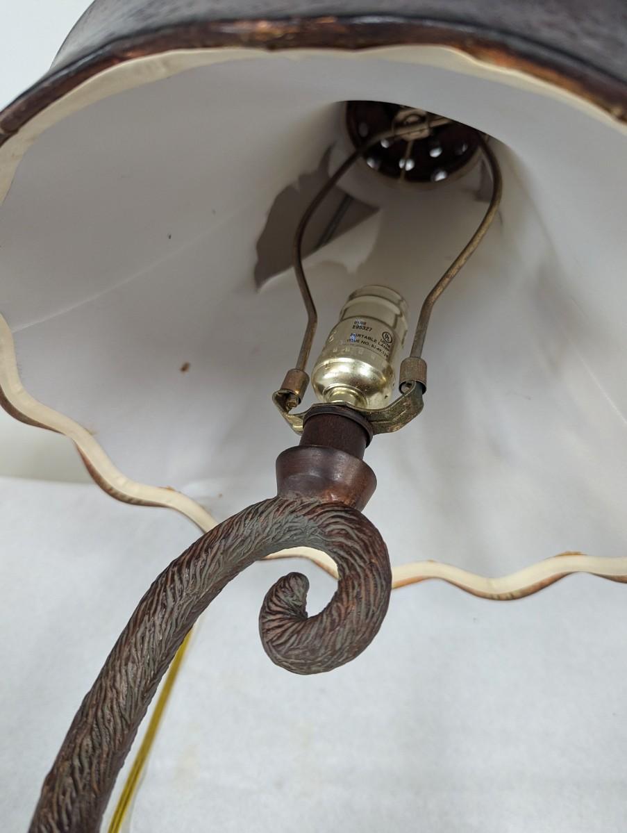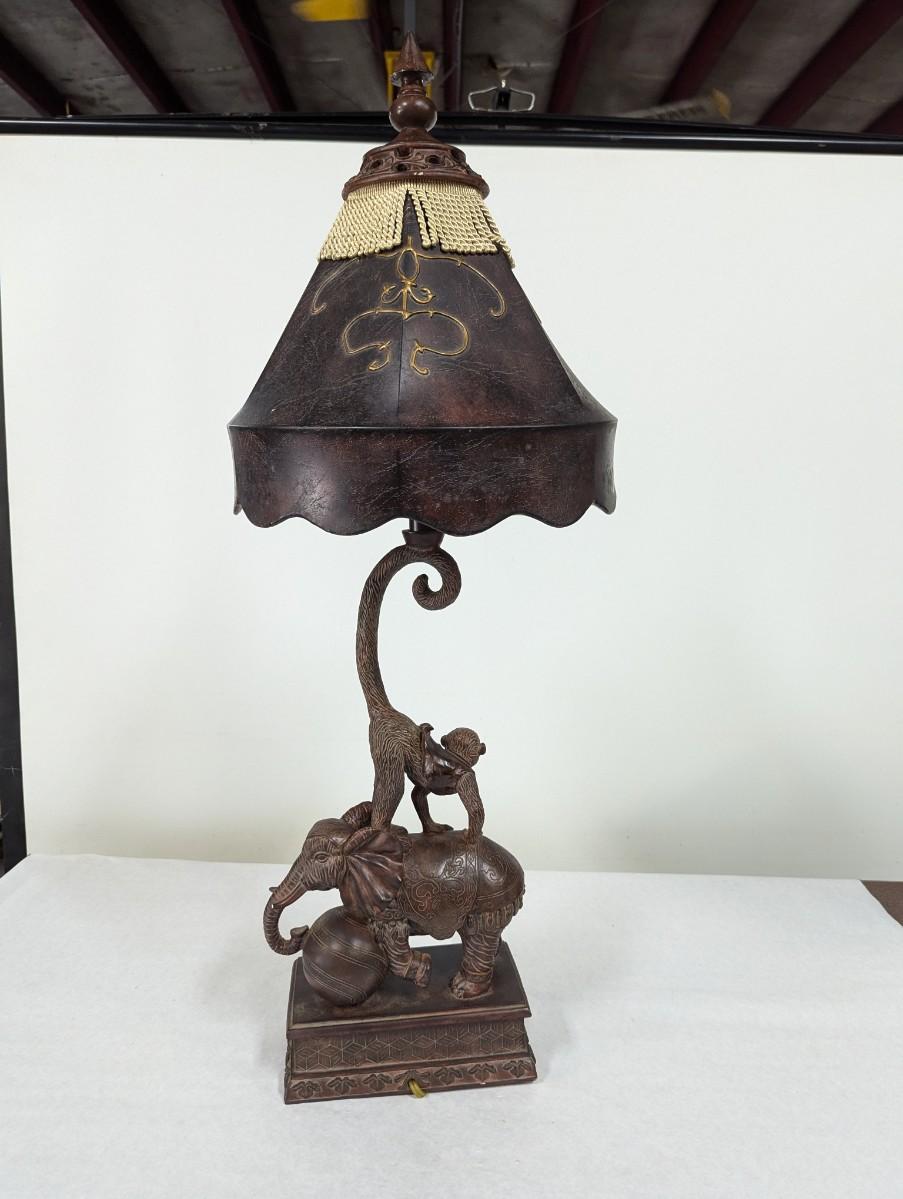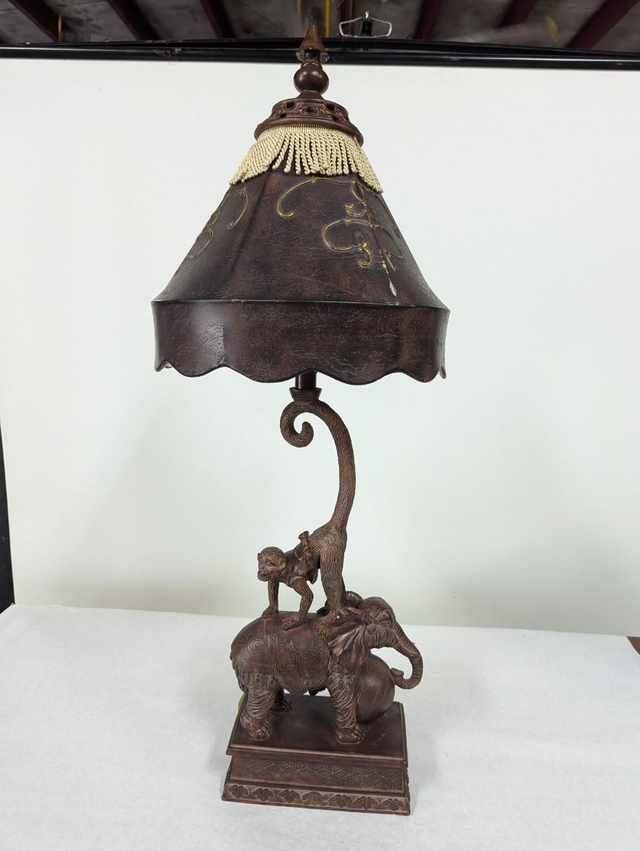 The shade has some damage on the inside and the elephant has damage to its tusk