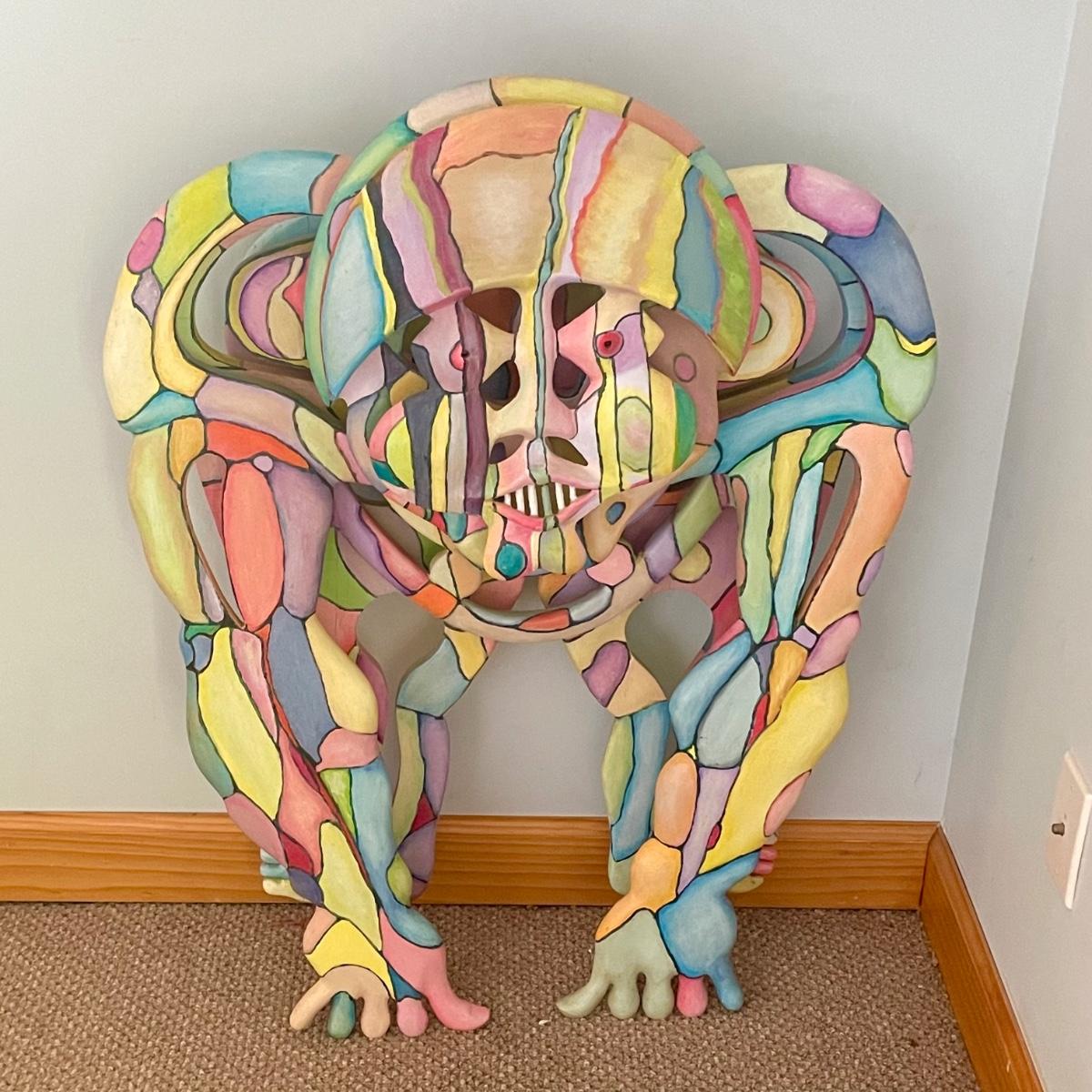 ThIs remarkable piece of wood art has been made up of 5 sections. It was made by local artist Ripp Smith and has been made to hang on the wall but the piece can also be situated on the ground if it leans against the wall. Wherever you put this primate, it’s a conversation starter for sure!