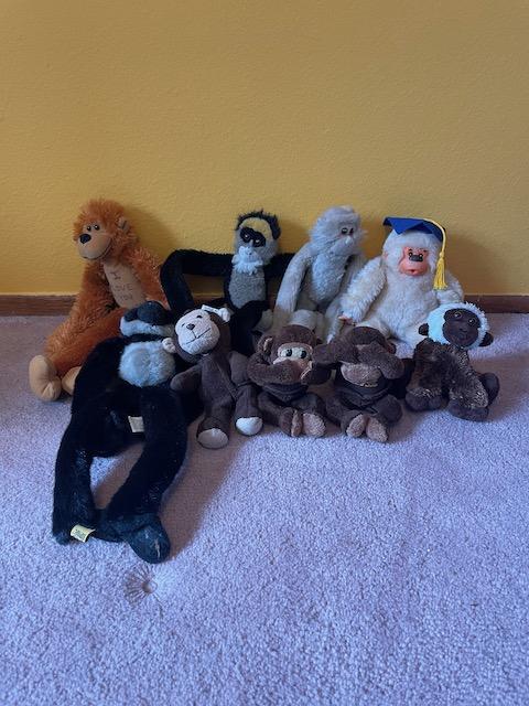 Monkey plush dolls - 8 or 9 dolls include the 3 evils monkies