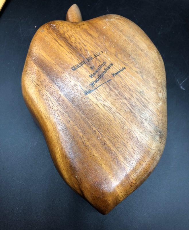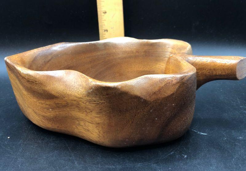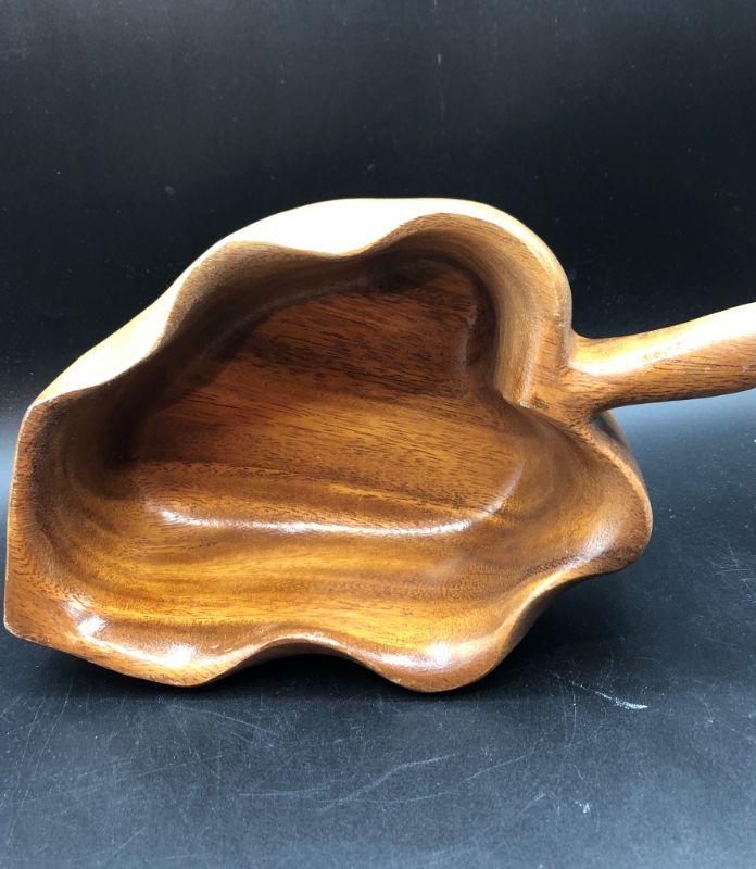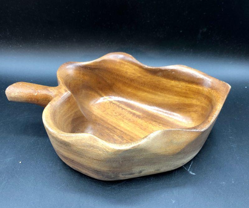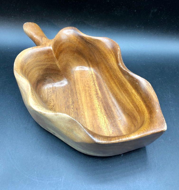 Monkeypod wood serving bowl. Leaf shape design. From Hawaii. Good condition.
