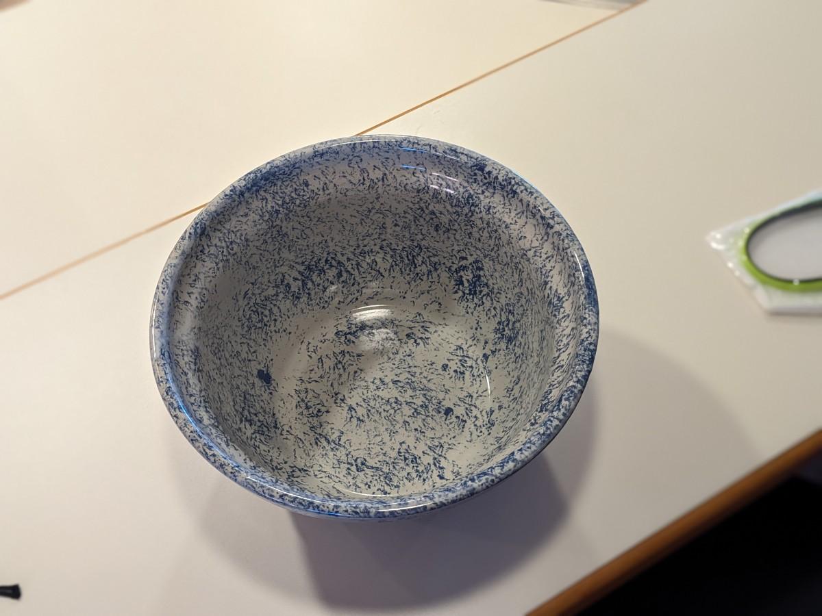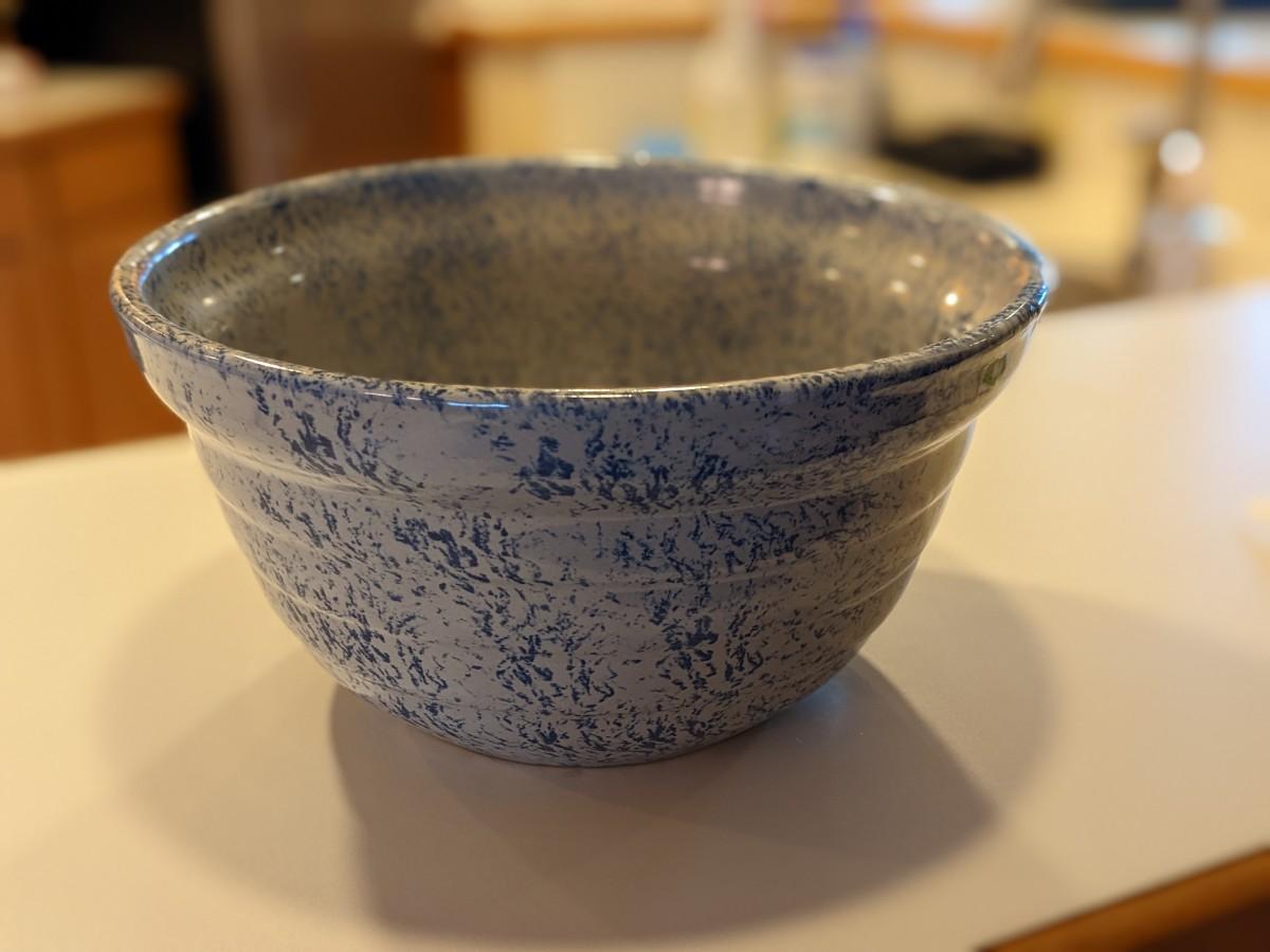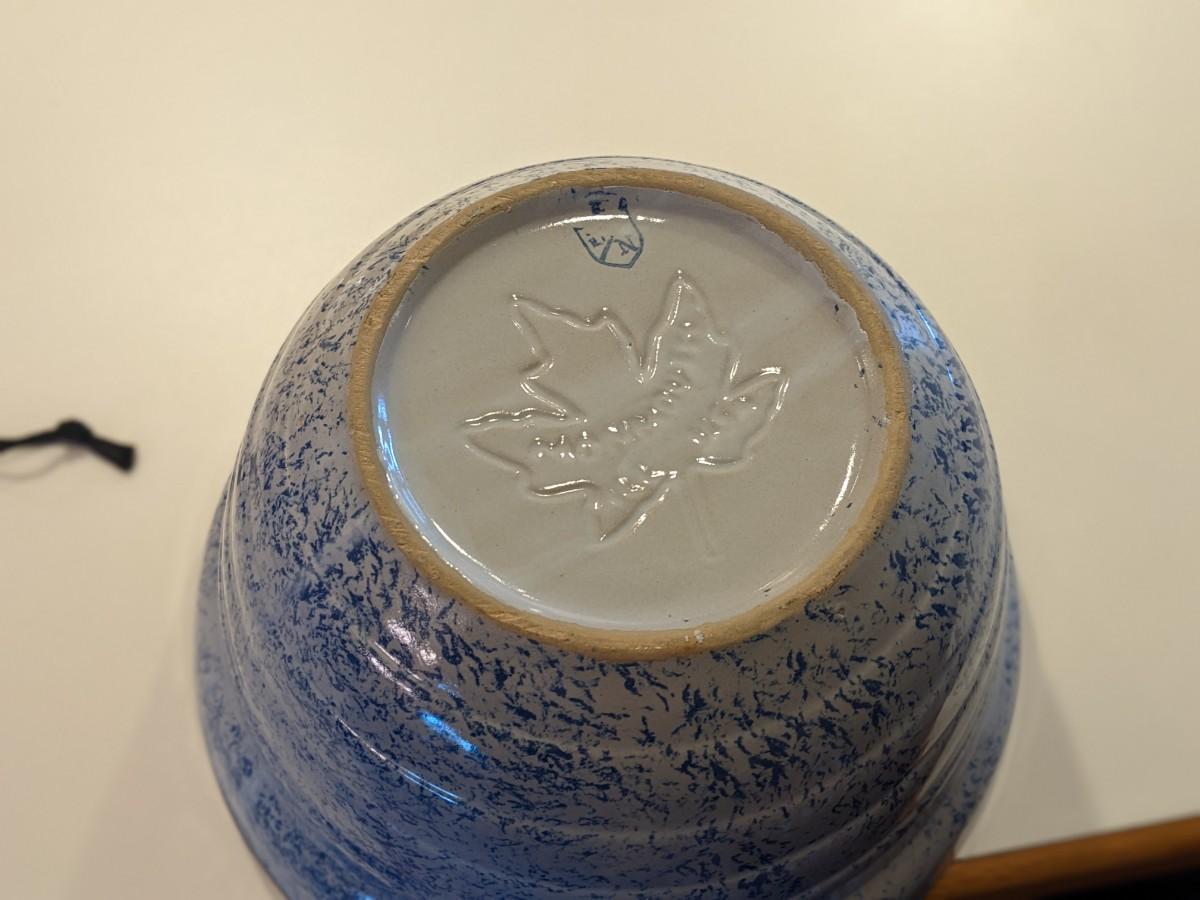 Monmouth Speckled Blue Maple Leaf Pottery Bowl