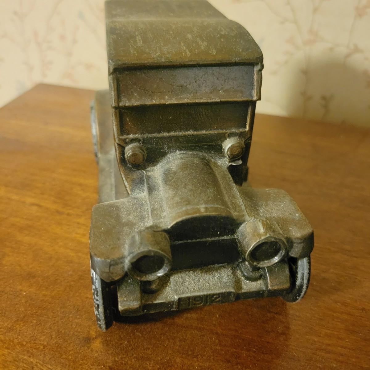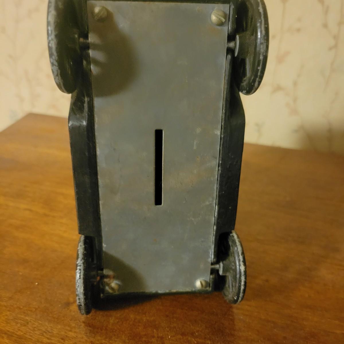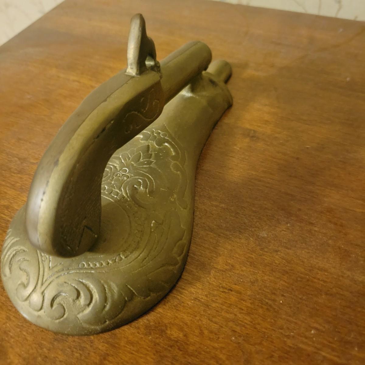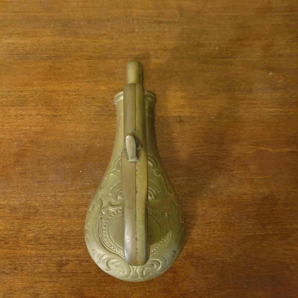 An assortment of four items in good condition. Included is a monolog weather station with temperature, humidity and barometer, a die cast piggy bank, a small brass spitoon and a brass door knocker with a flint lock for its knocker. Spitoon measures approximately 6" x 4.5" Shipping available