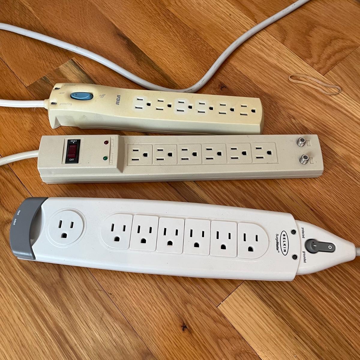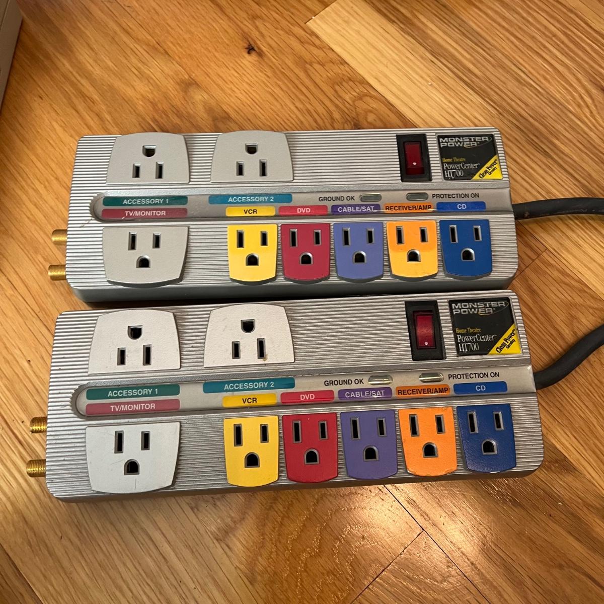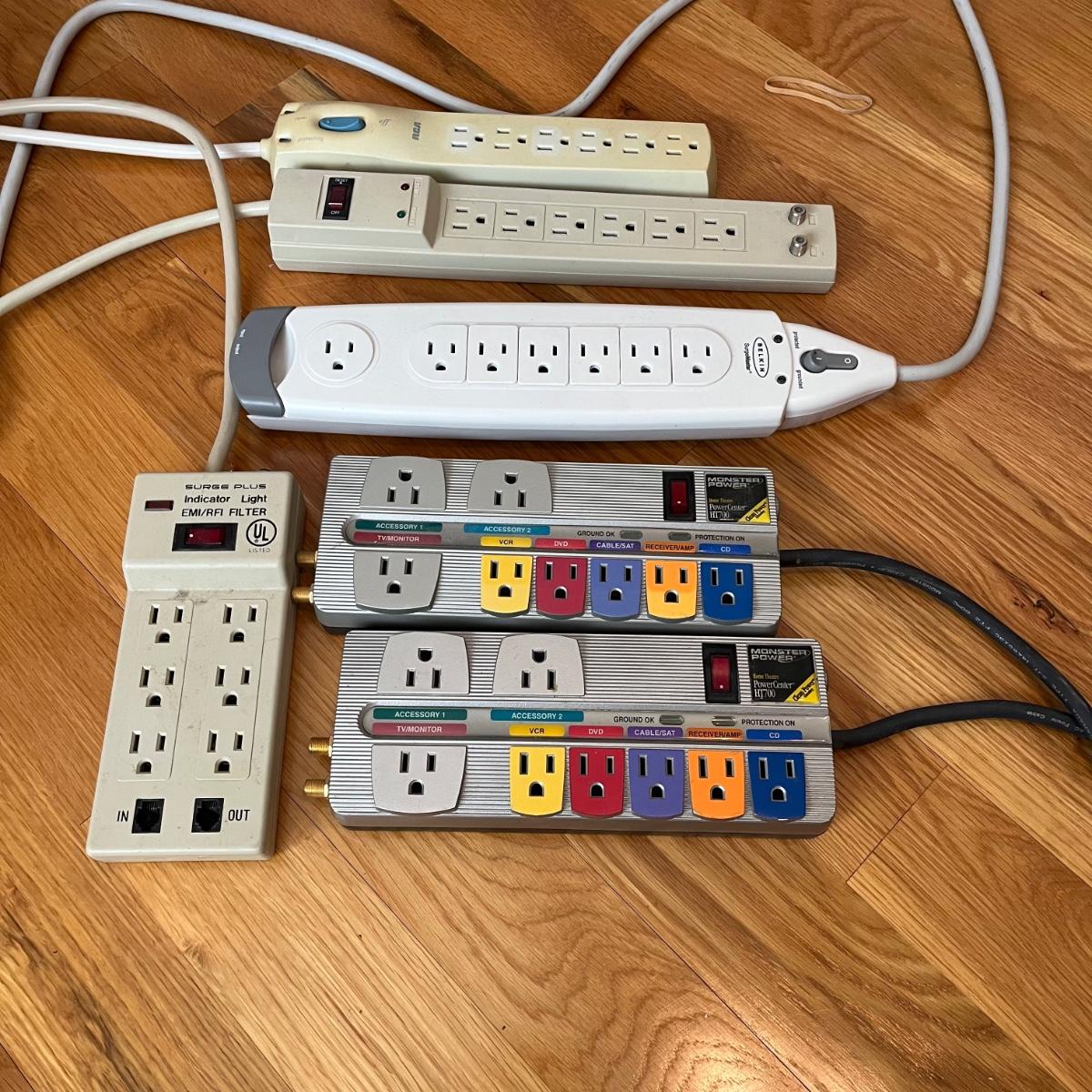 Lot includes two Monster Power surge protectors, and four more surge protectors.