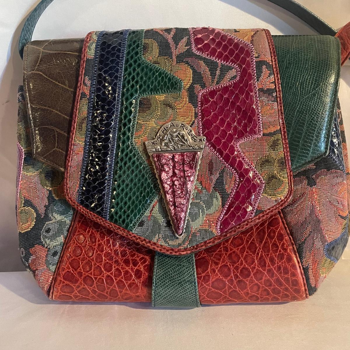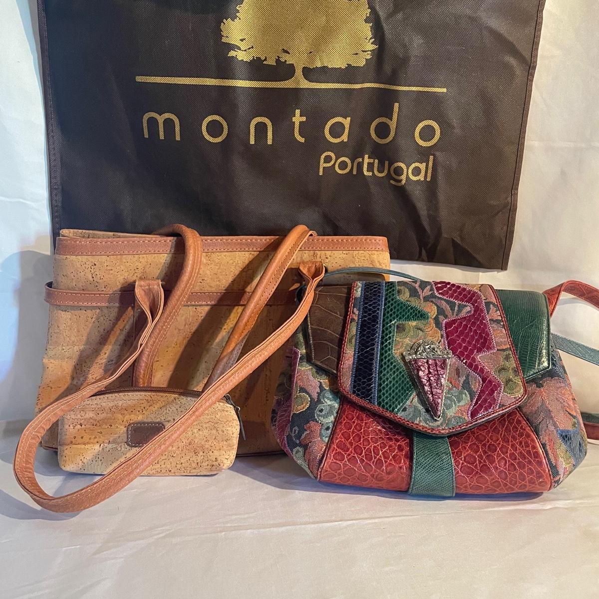 An opportunity to do own a new Montado purse with matching wallet that comes with tags still attached and storage tote. This short strapped purse measures 14” x 9” x 5”. Also included is an attractive multi colored Sharif shoulder purse; it is in excellent condition.