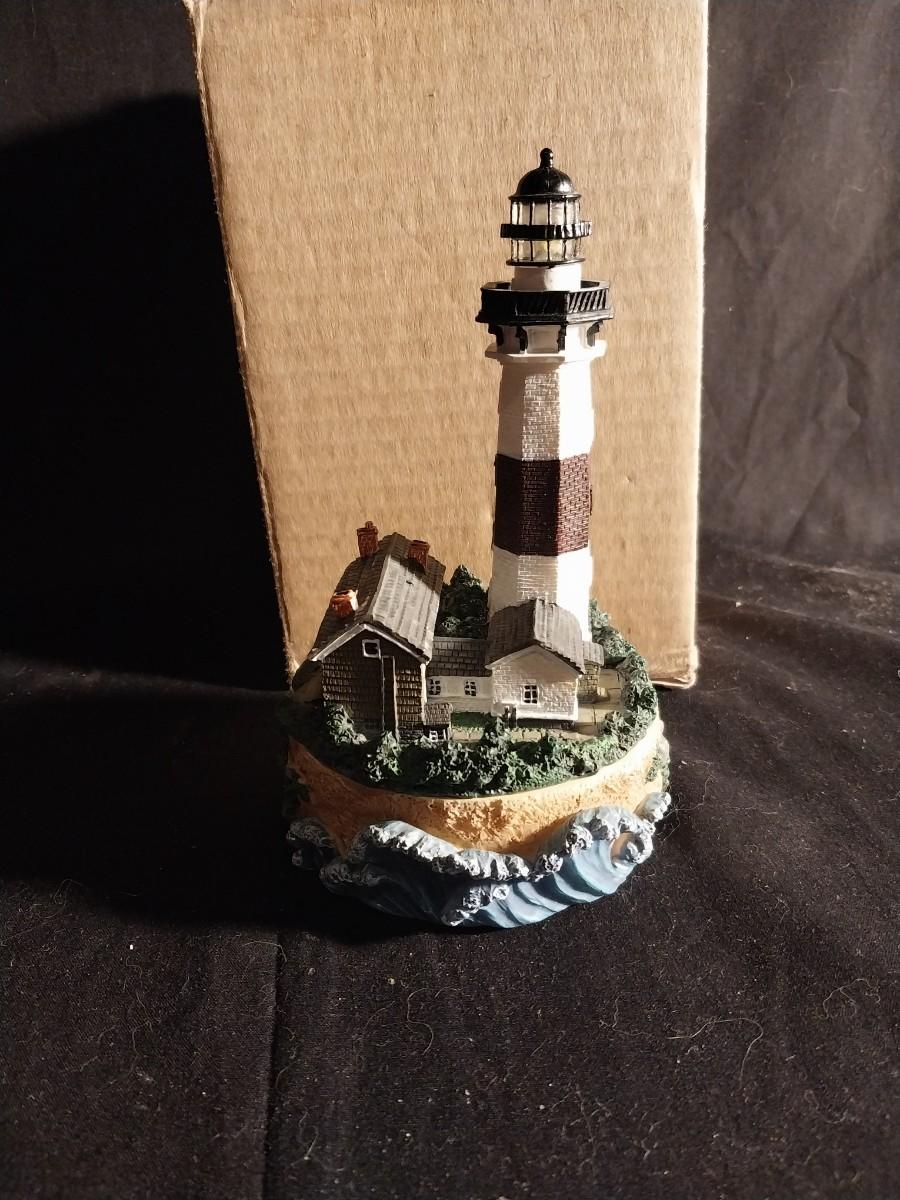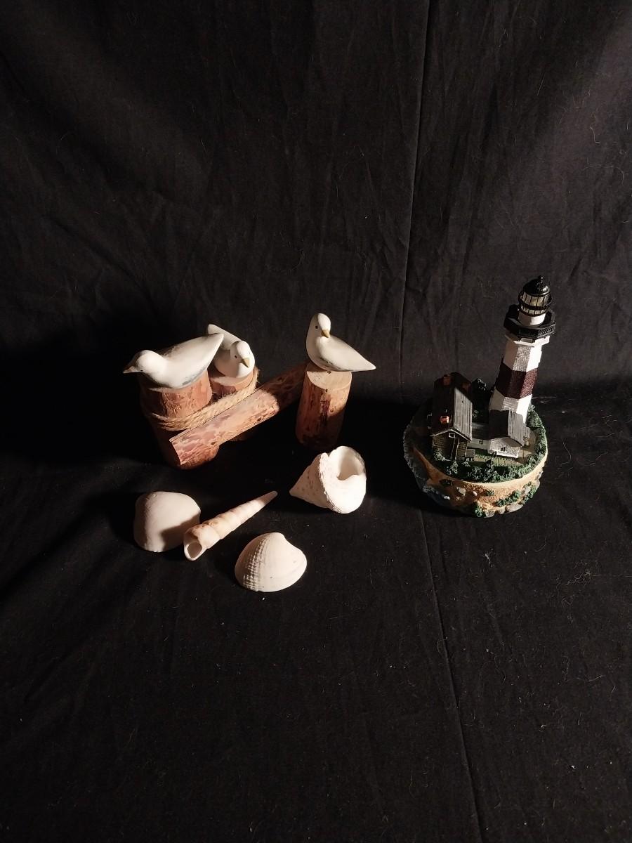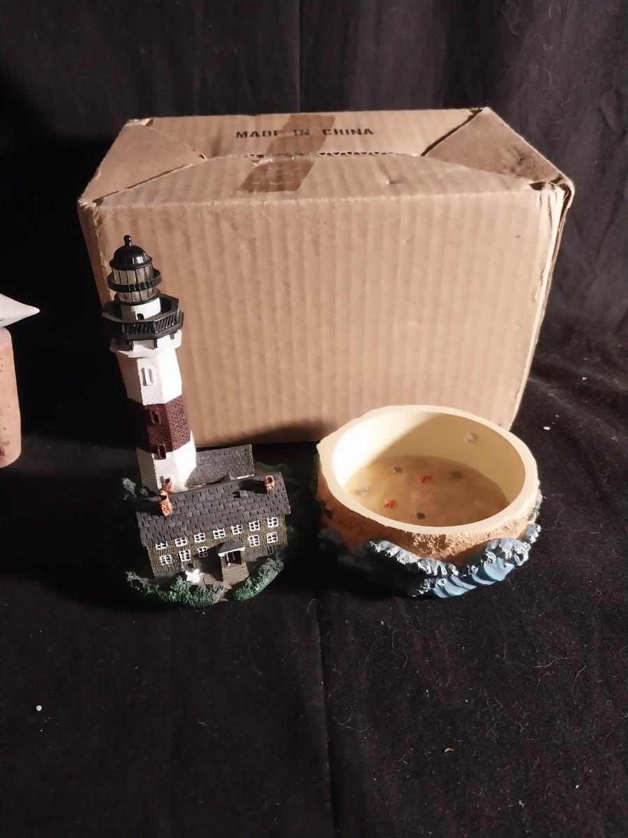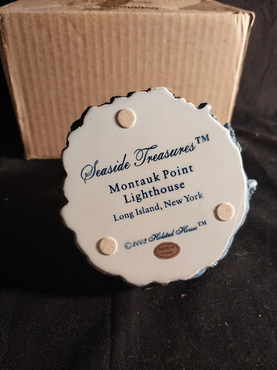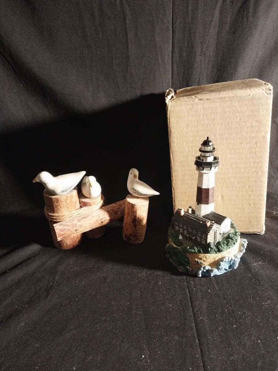 MONTAUK POINT LIGHTHOUSE TRINKET BOX AND SEAGULL FIGURINES