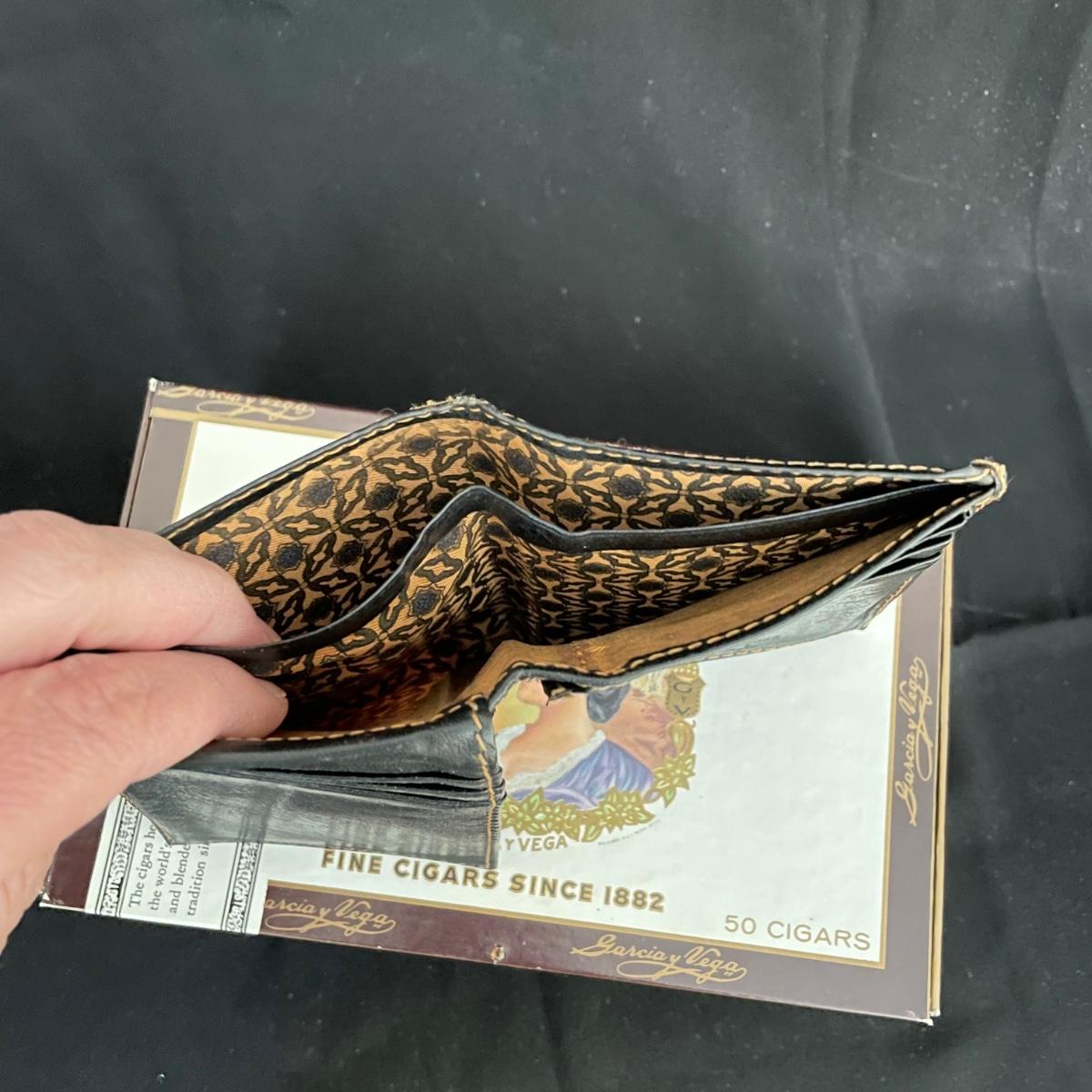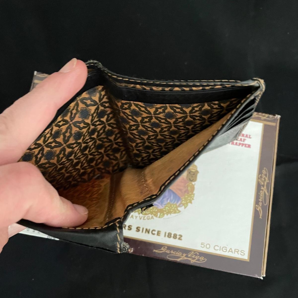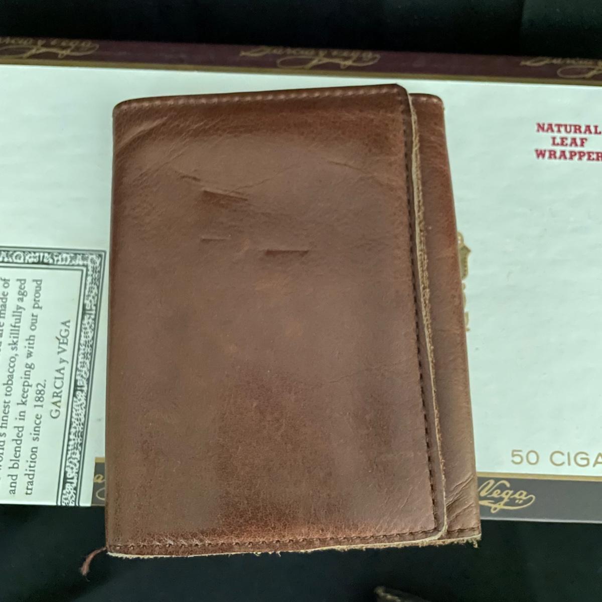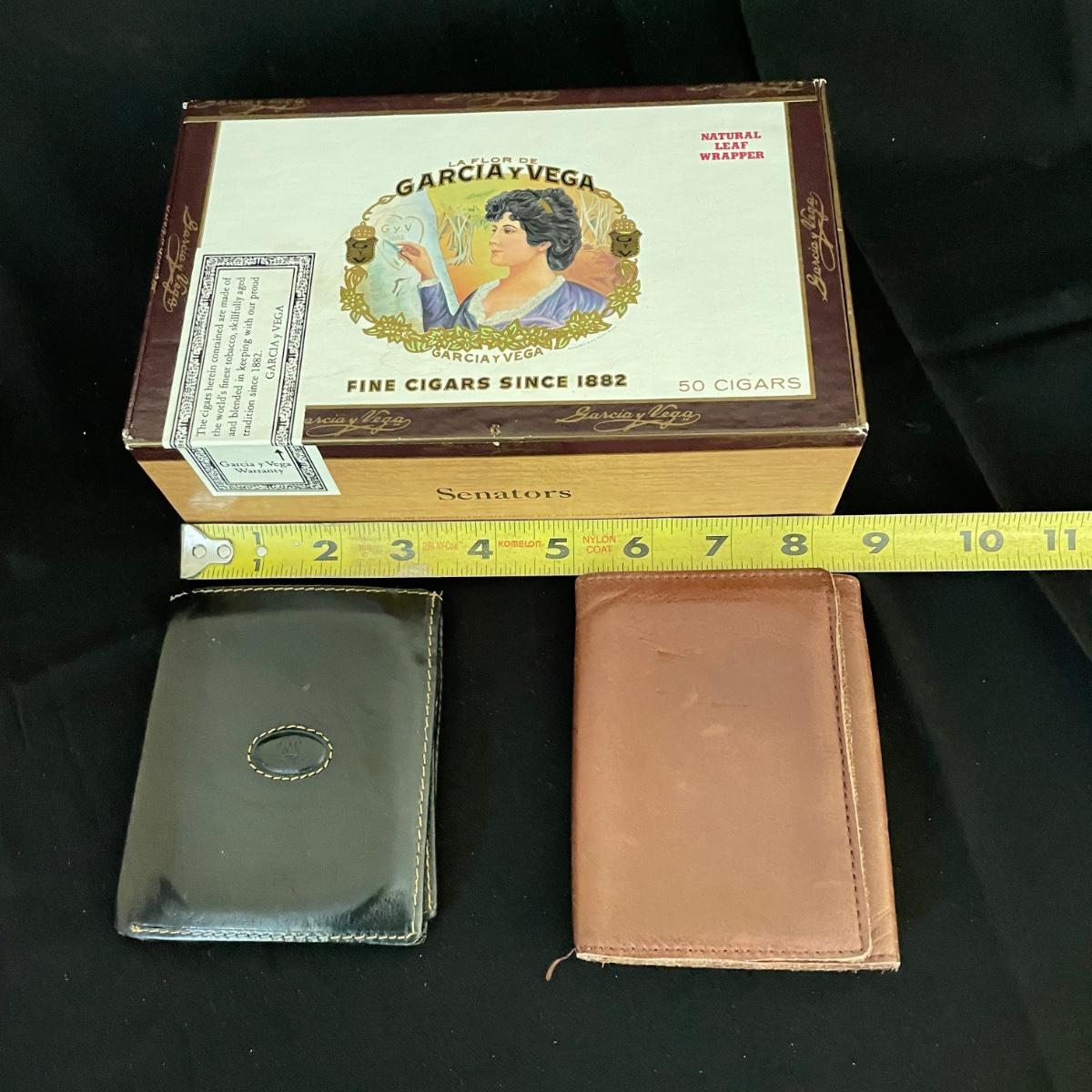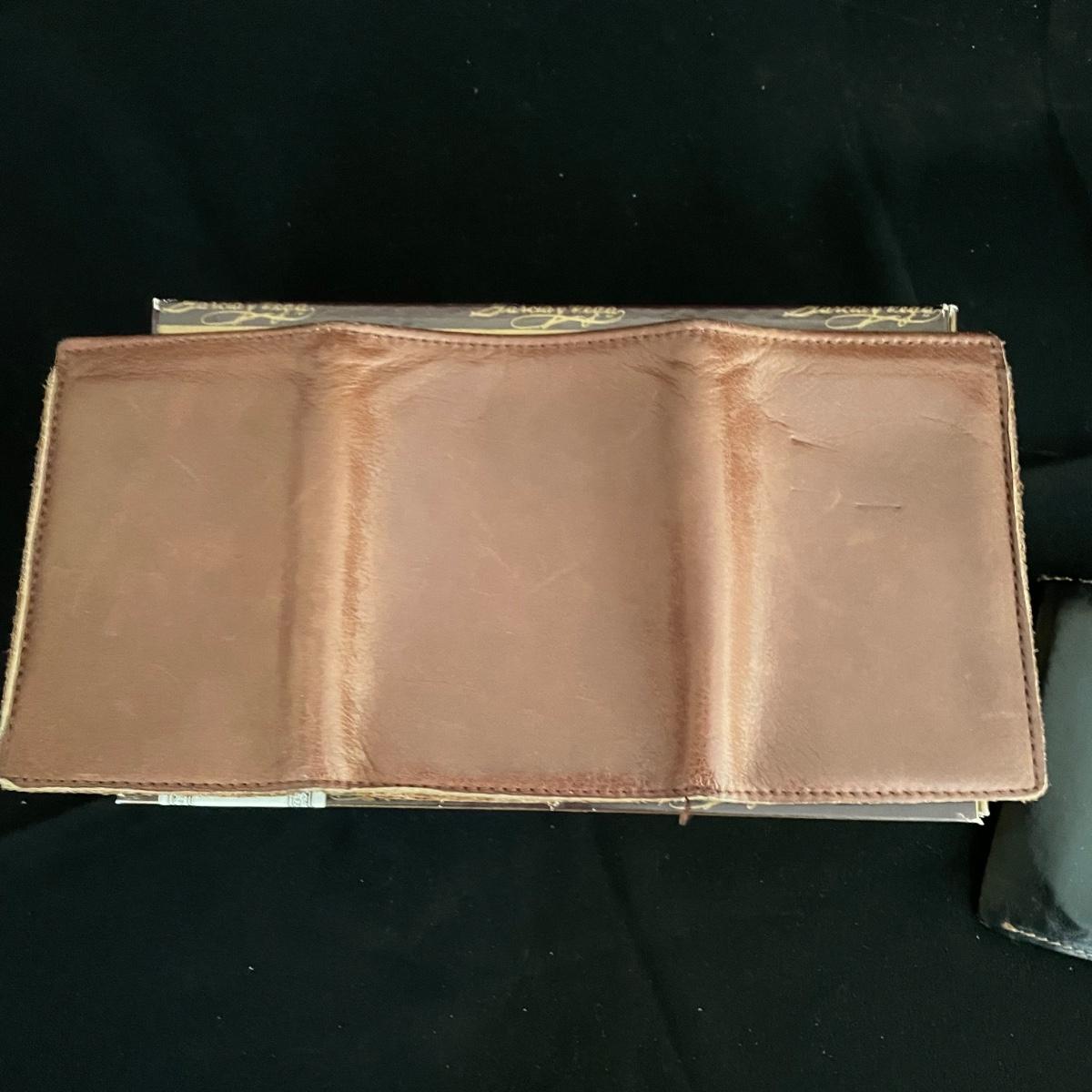 Like new brown leather wallet with a black Montenapoleone wallet. Both wallets appear in great shape and come with a Garcia y Vega Senators Cigar box. See images. Shipping available.