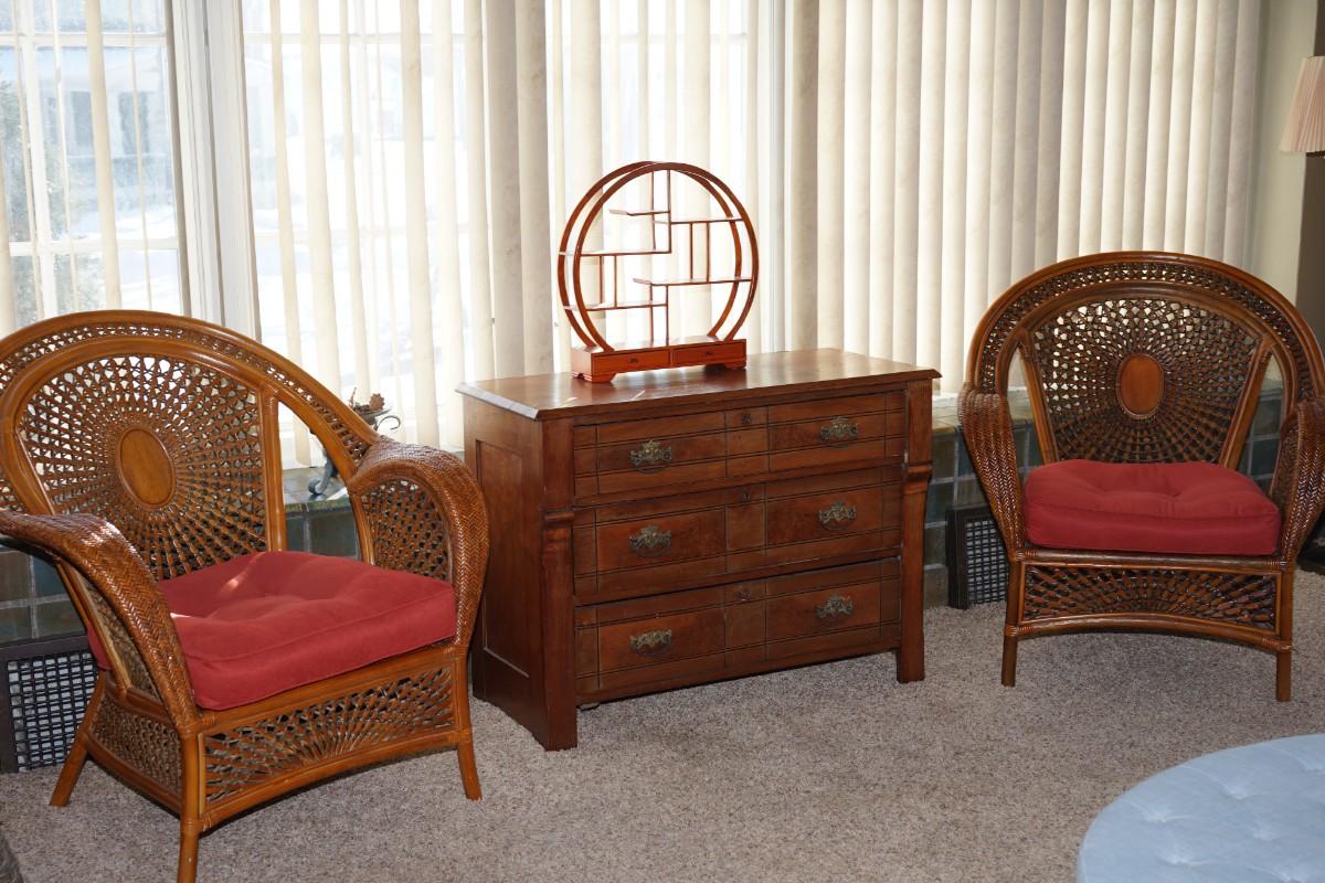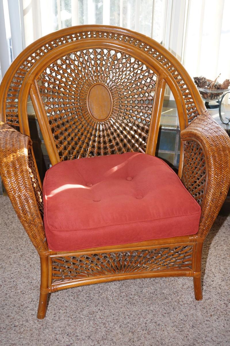 MONTEREY STYLE HIGH BACK RATTAN & WICKER CHAIRS W/CUSHIONS