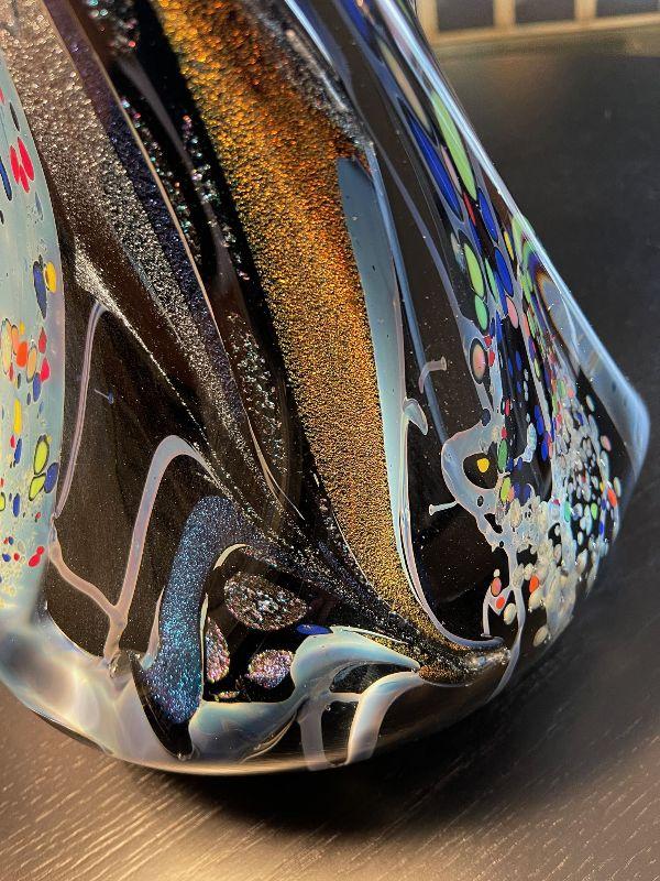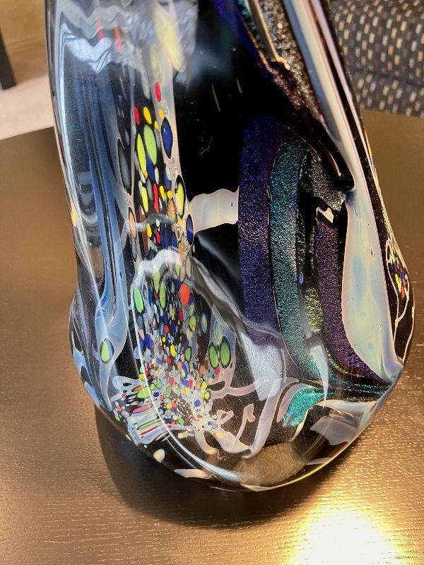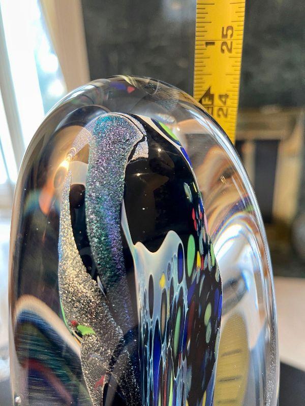 It is a herculean task indeed to pull and manipulate a piece of glass with such a significant weight! All hand polished and finished with no damage of any kind. Great color swirls around and inside this piece.