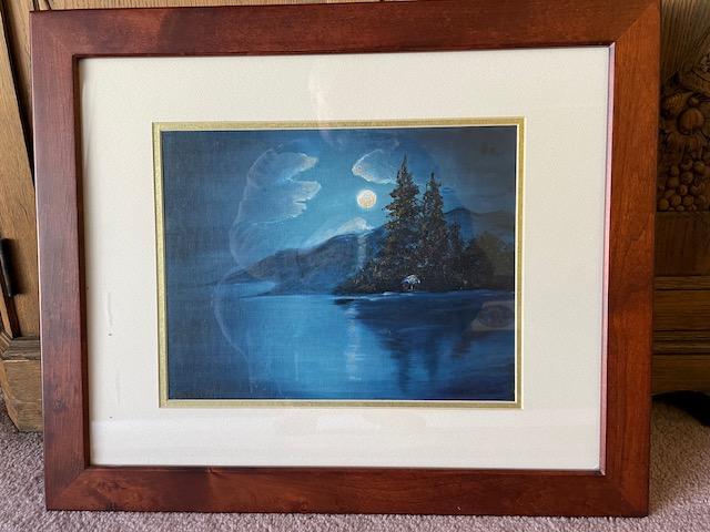 Moon picture is 19 1/2 x 23 1/2 Nice wood frame