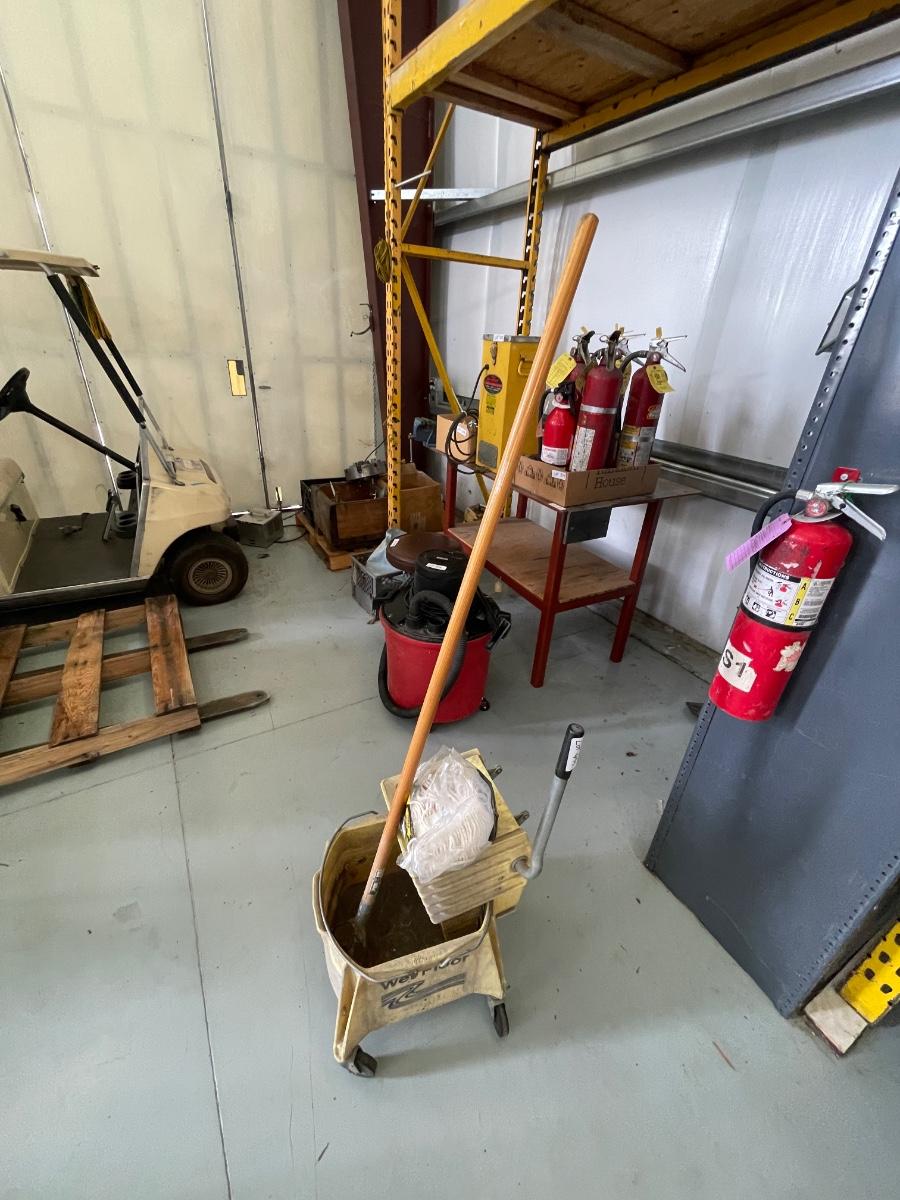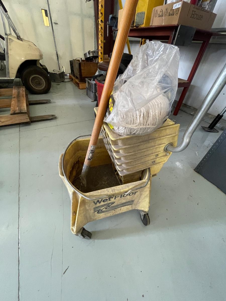 Rolling Mop Bucket with Wringer & Mop Pole & New Mop Head - Good for Shop/Warehouse/Business