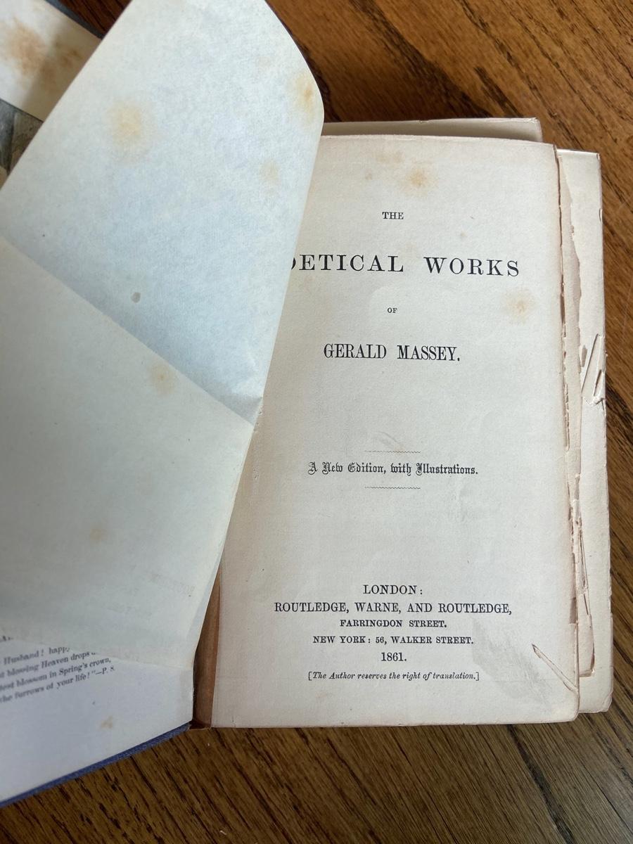 The Poetical Works of Gerald Massey (1861), with illustrations Routledge, Warne, Routledge,blue hardcover