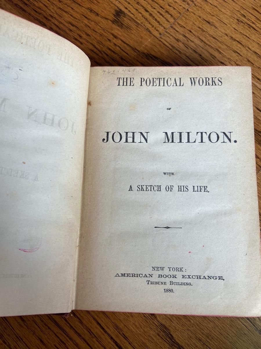 The Poetical Works of John Milton (1880), with a sketch of his life, American Book Exchange, brown hardcover