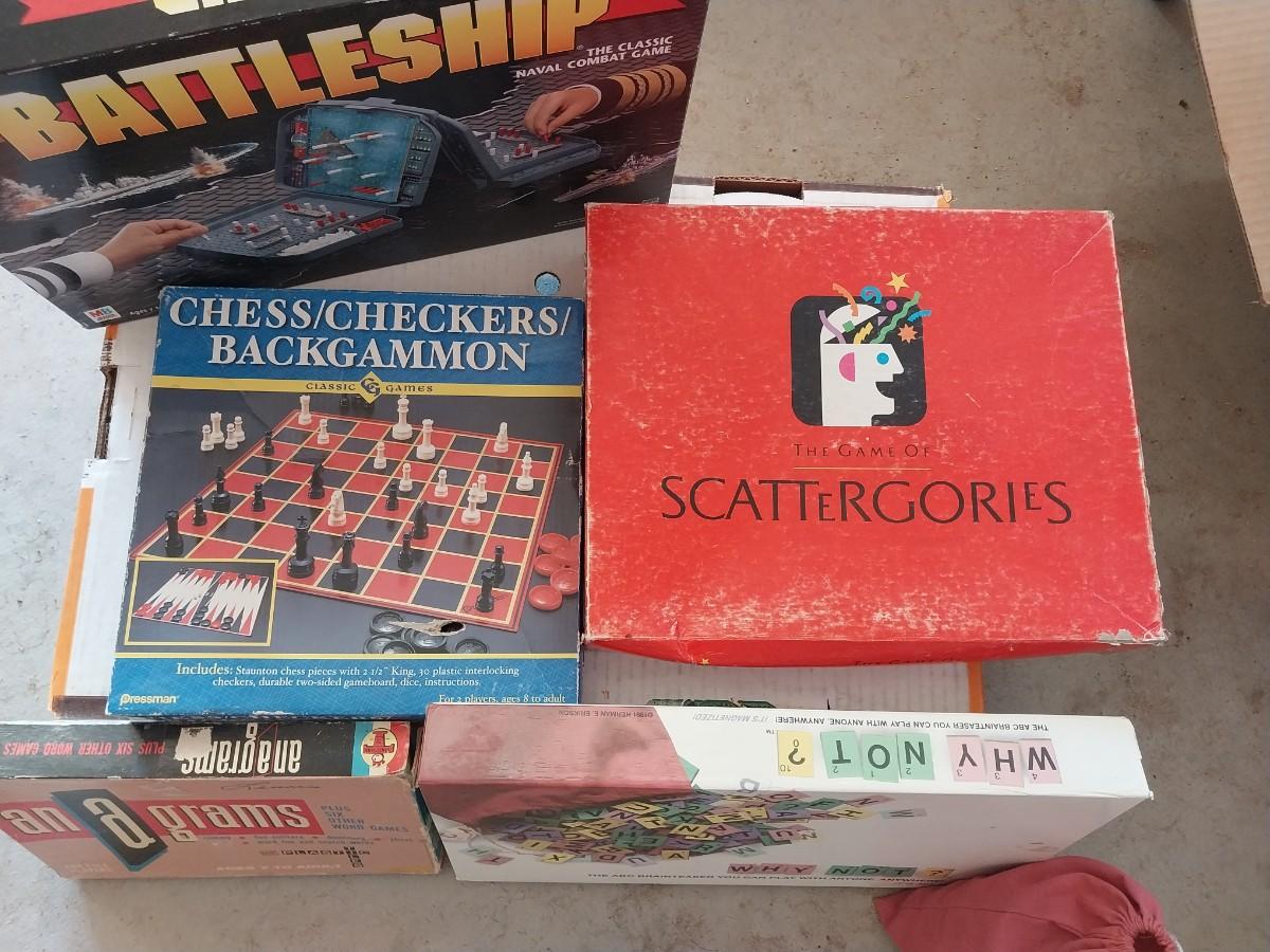 MORE FUN- BATTLESHIP-SCATTERGORIES-WHY NOT-CHESS/CHECKERS-ANAGRAMS