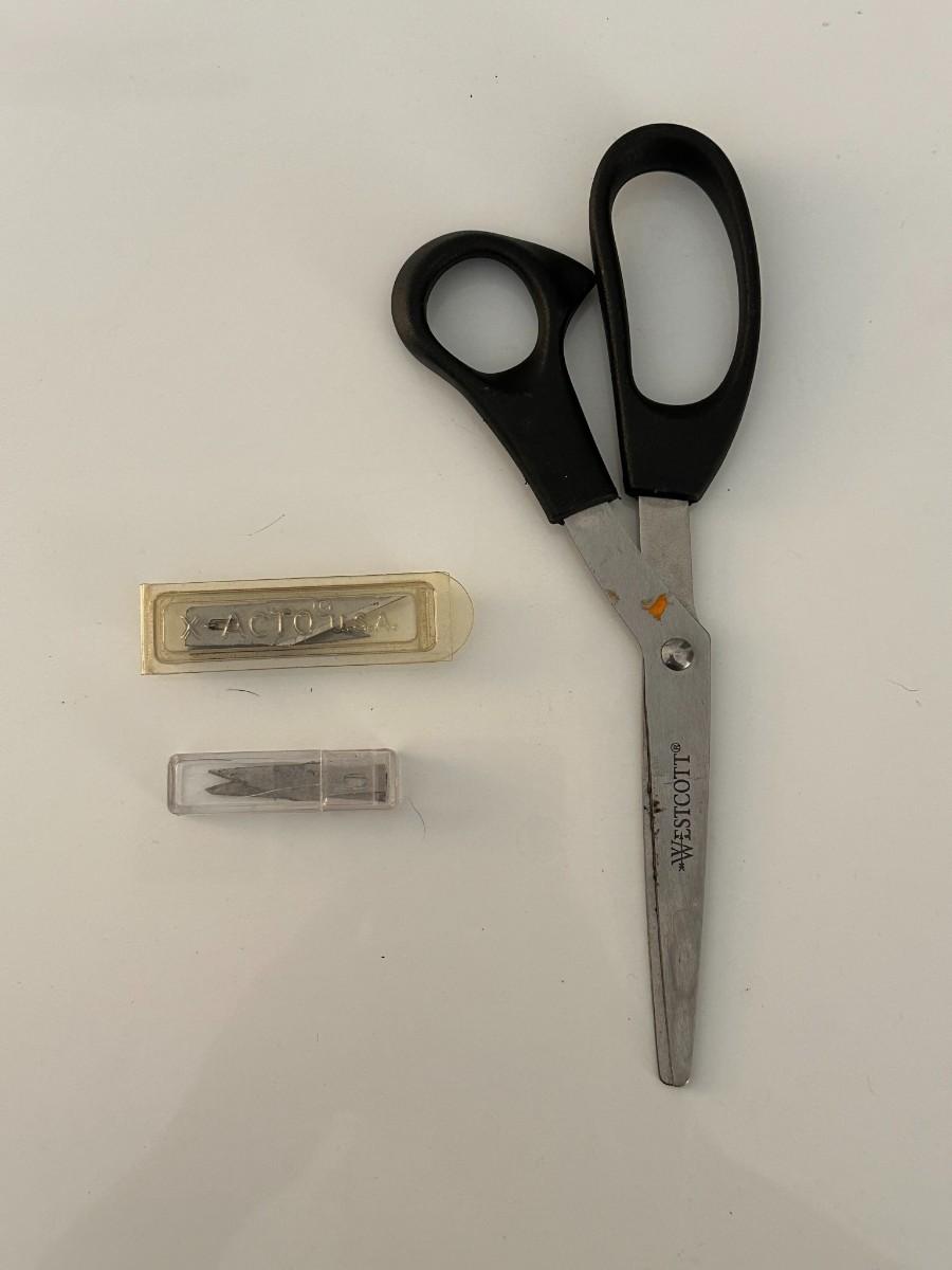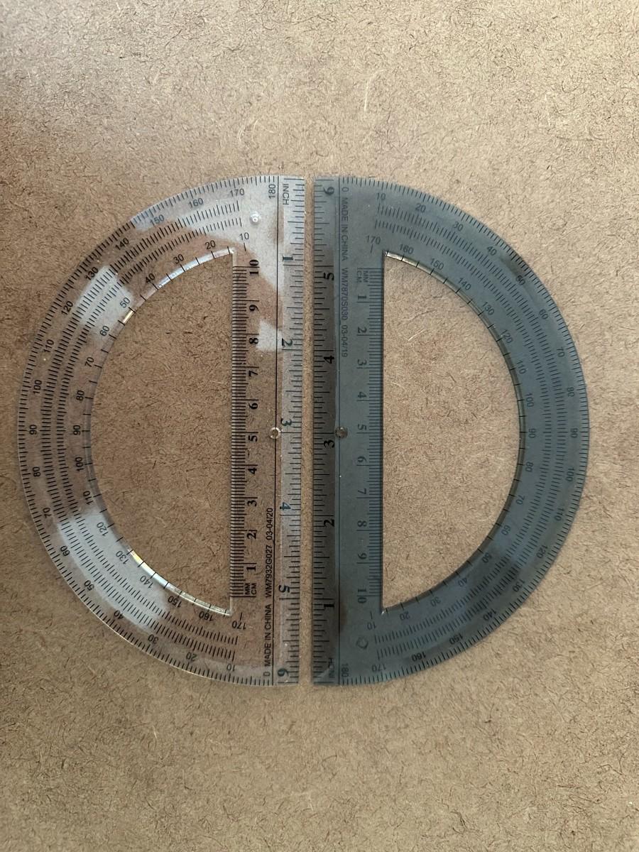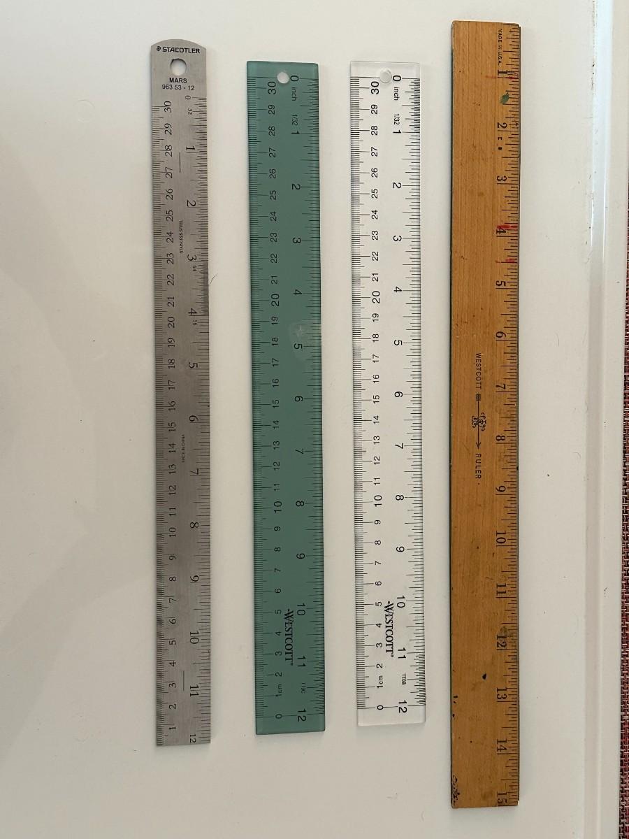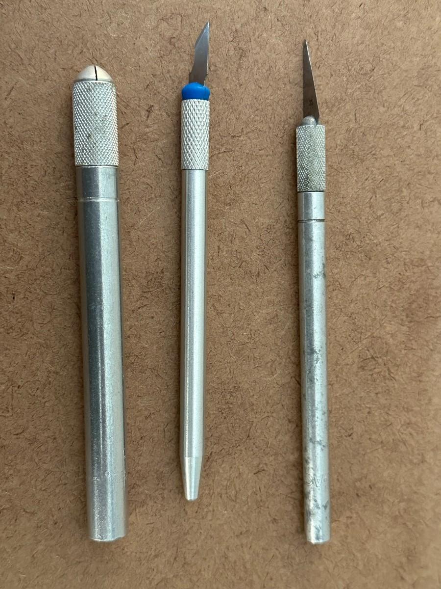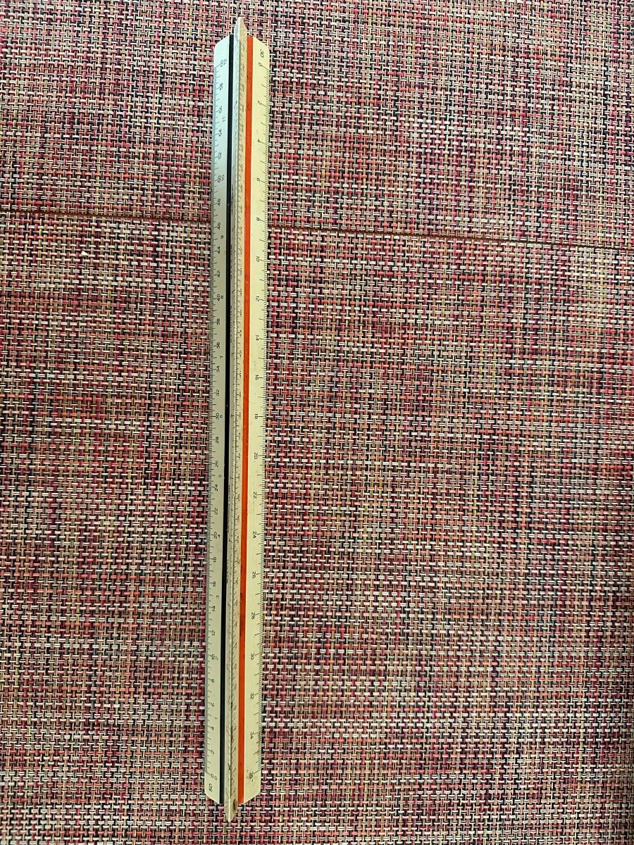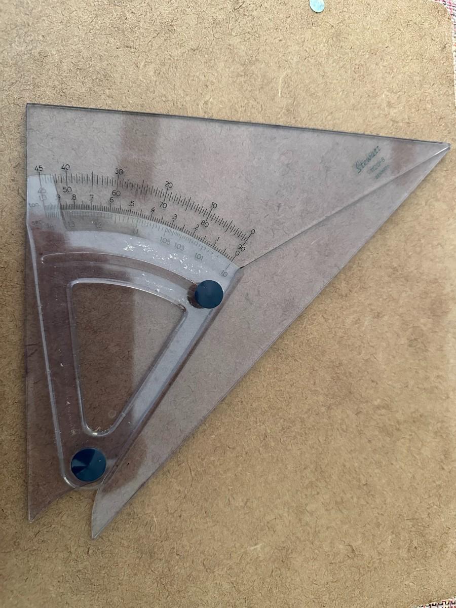 3 templates, Stewart angle tool, 3 protractors, gold ruler, plastic ruler, engineer slide ruler, 3 exacto knives, assorted rulers, scissors, blue circle tool, exacto blades, t-square and more pencil holders