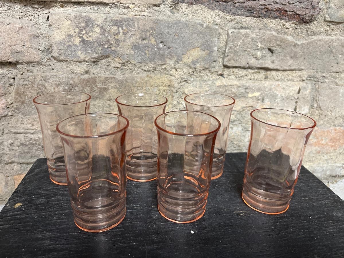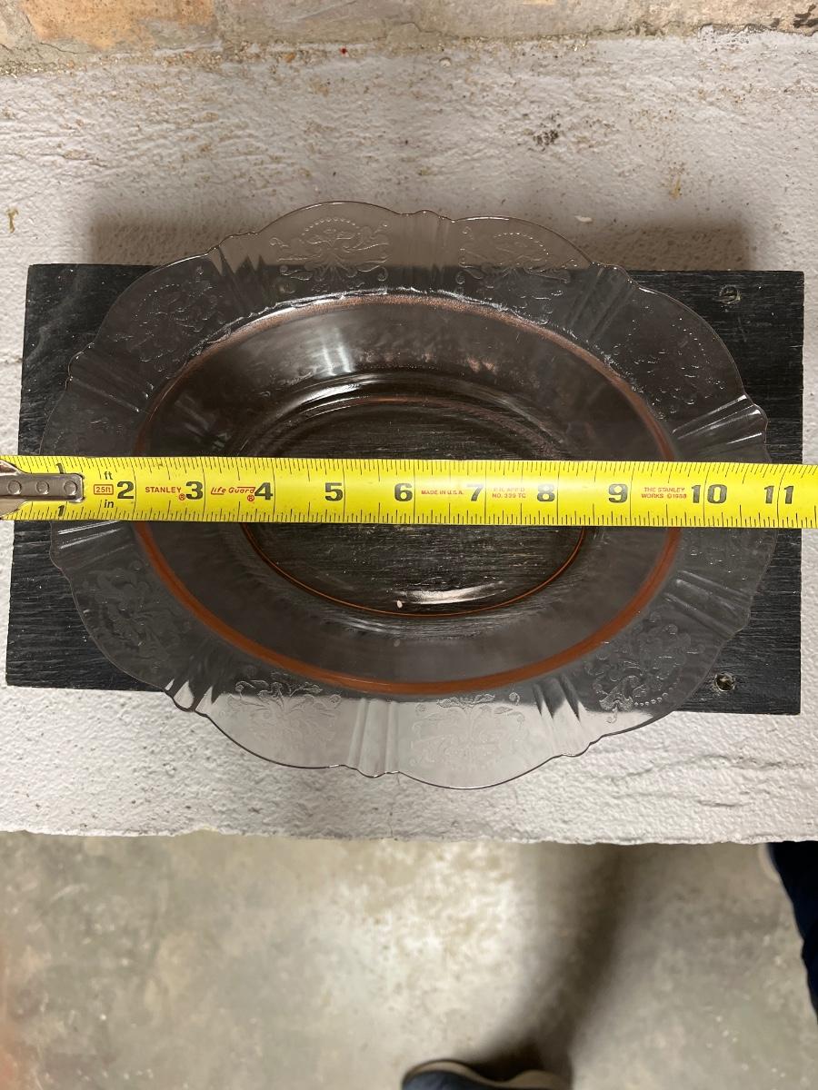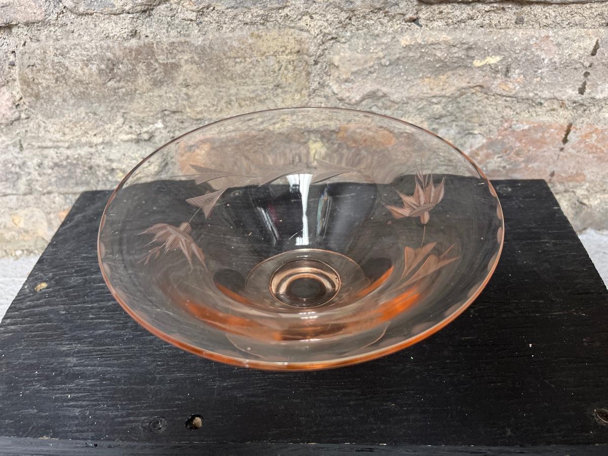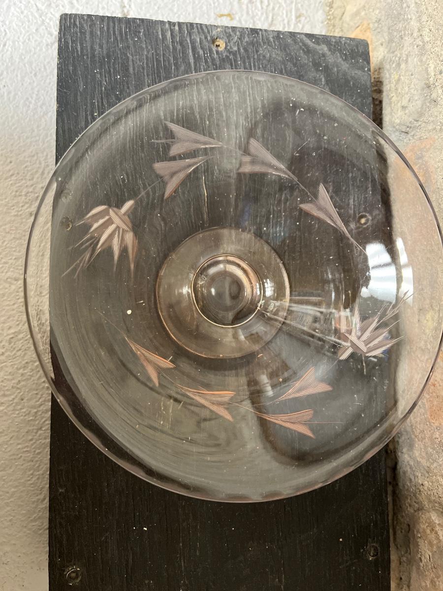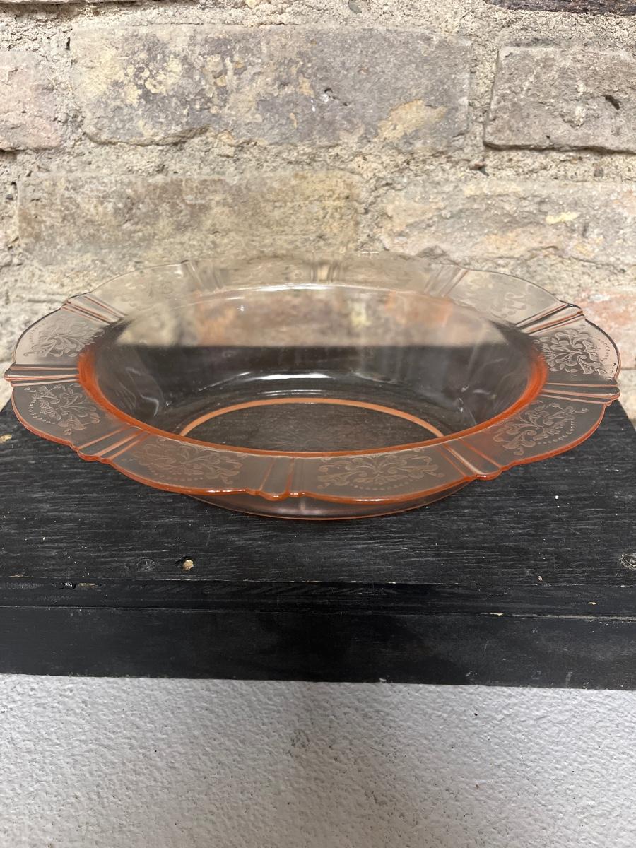 Macbeth Evan American Sweetheart vegetable bowl, Etched ( Heisey?) footed bowl, and six juice glasses