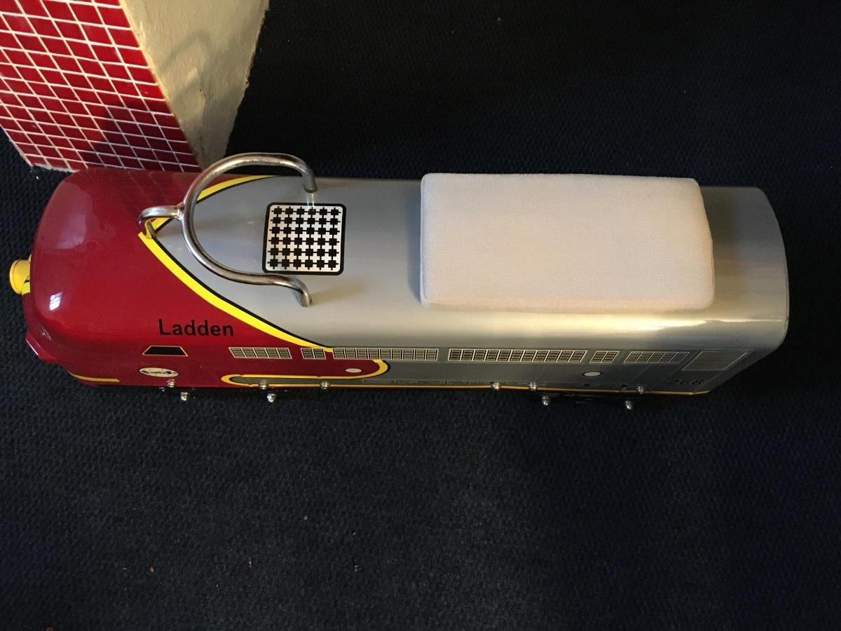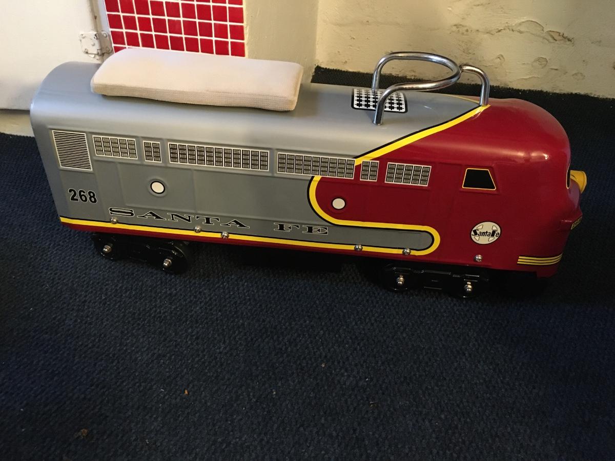 Metal train with cushion set and handle. Fun and unique ride on train! Solid and in excellent condition