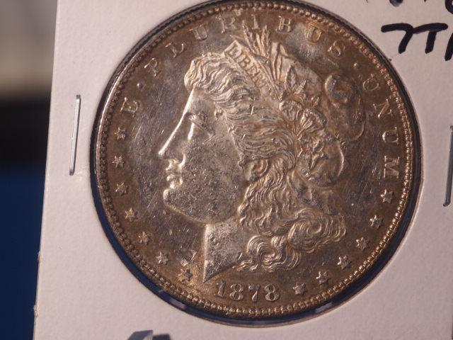 1878 P 7 Tail Feather Morgan Silver Dollar in MS 63 Condition value 260 to 758