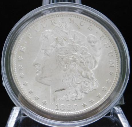 Morgan US Mint 1880-S Silver Dollar Ungraded has some marking on the portrait with wear to the obverse. Reverse relief is crisp. Good pinwheel (4)
