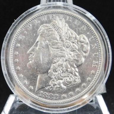 Morgan US Mint 1882 Silver Dollar Ungraded. Obverse has a bright background but visible wearing but not overdone. Reverse is consistent with the obverse. (11)
