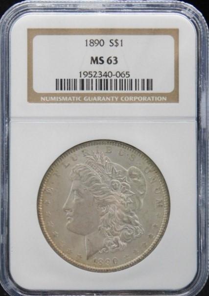 Morgan US Mint 1890 NGC Graded MS63 Silver Dollar