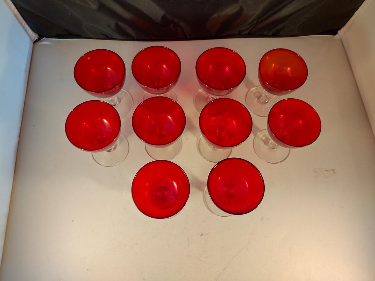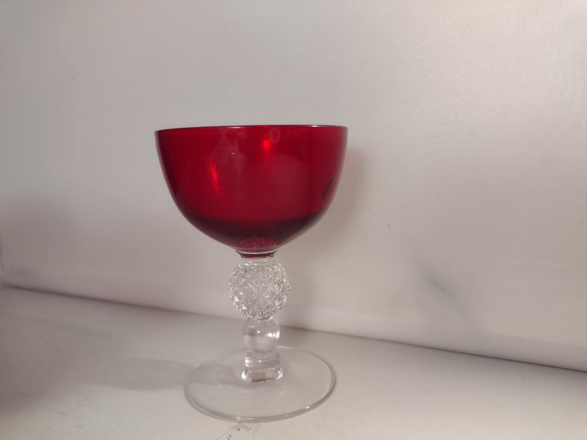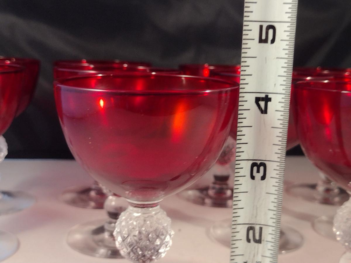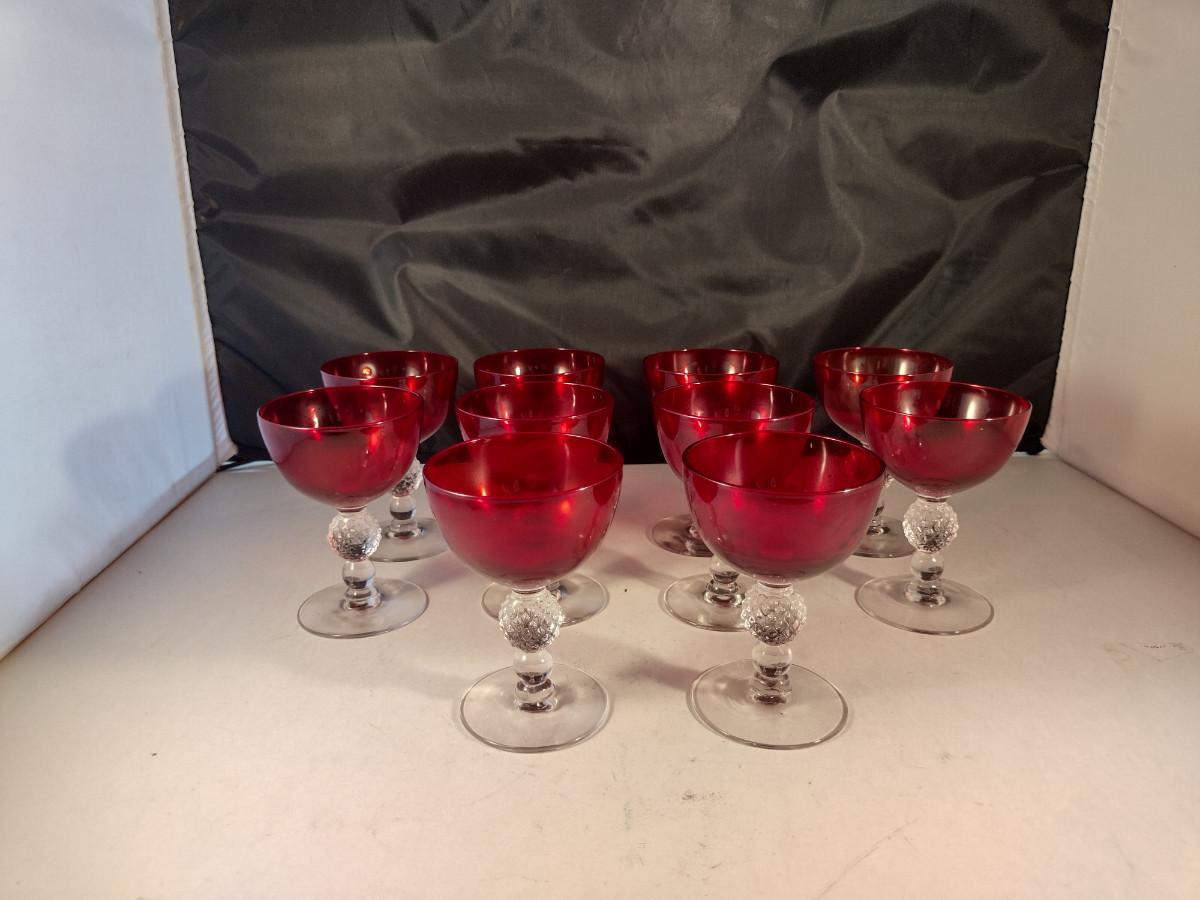 Morgantown 'Golf Ball' Low Sherbet Ruby Colored Glass- Ten Pieces