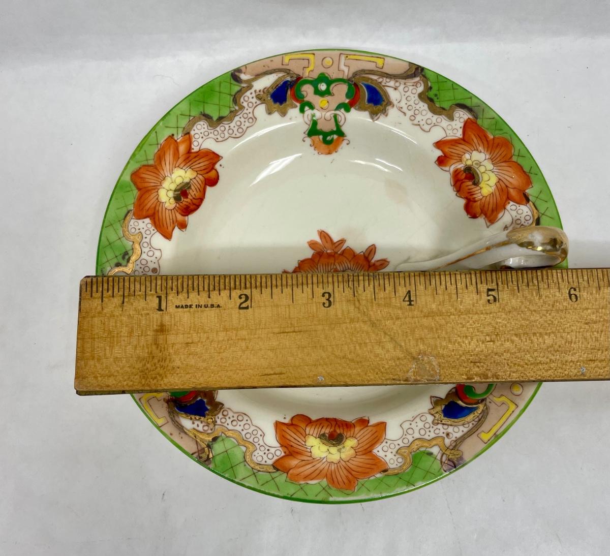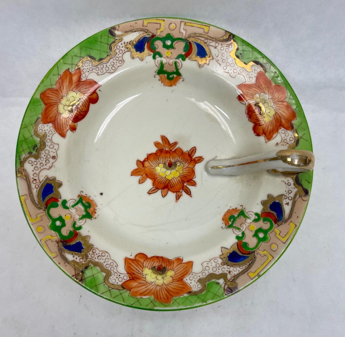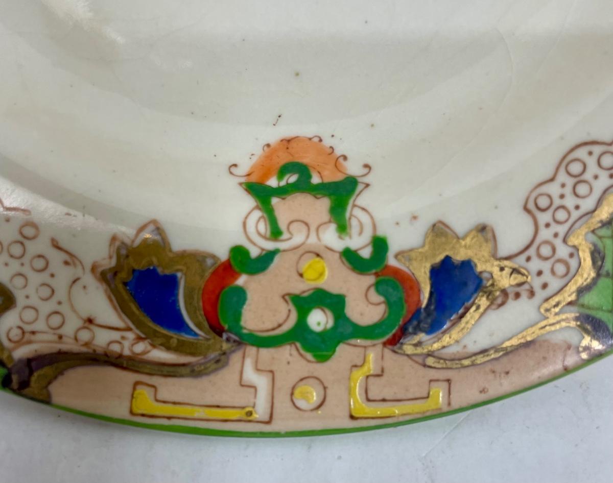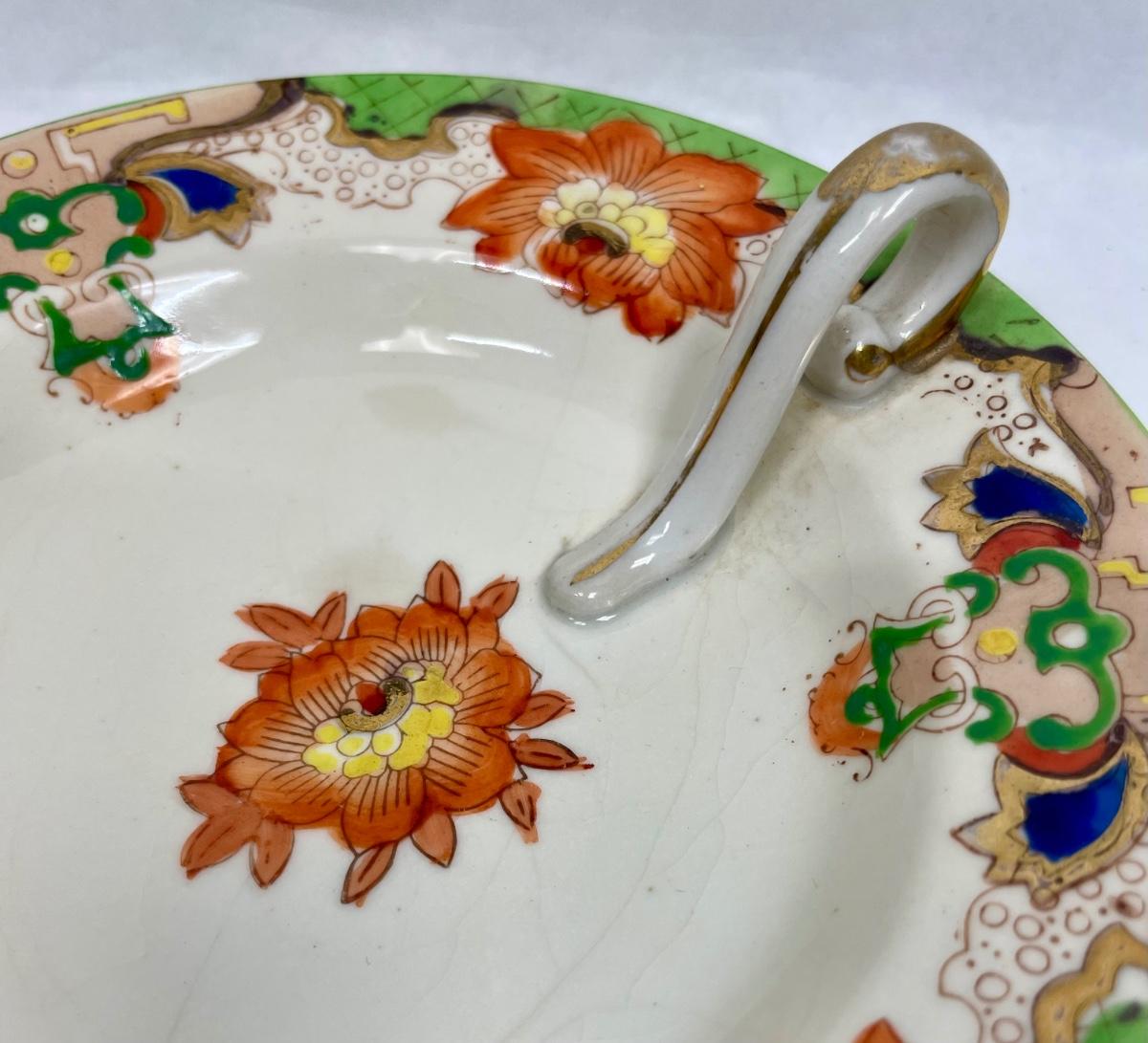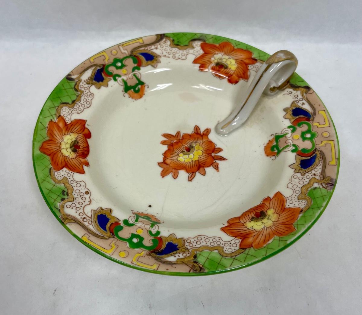 Antique Moriyama Morimachi JAPAN Lemon Dish~Bon Bon~ Orange Yellow Floral Green Accent Gold Red. Some crazing, but no cracks or chips.