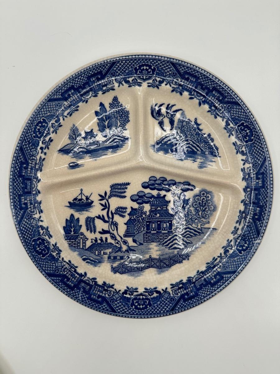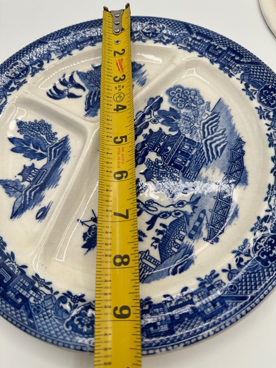 9.5” ceramic early blue willow grill plate. Some crazing on plates, see pictures.