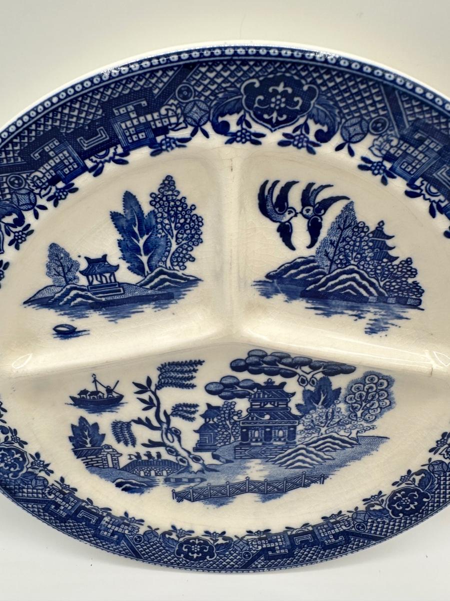 MORIYAMA Occupied Japan, Early Blue Willow Grill Plate