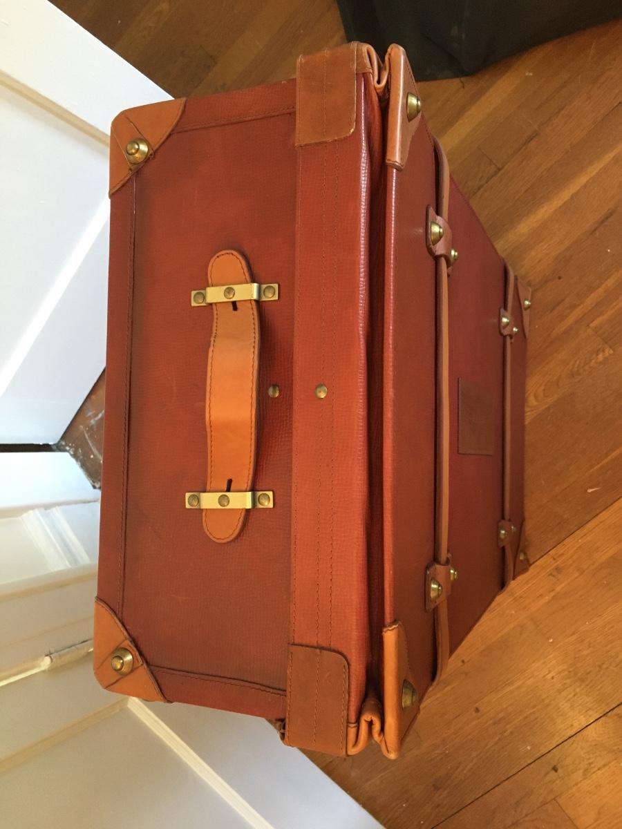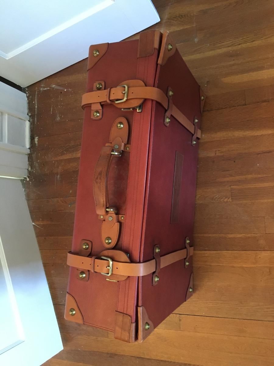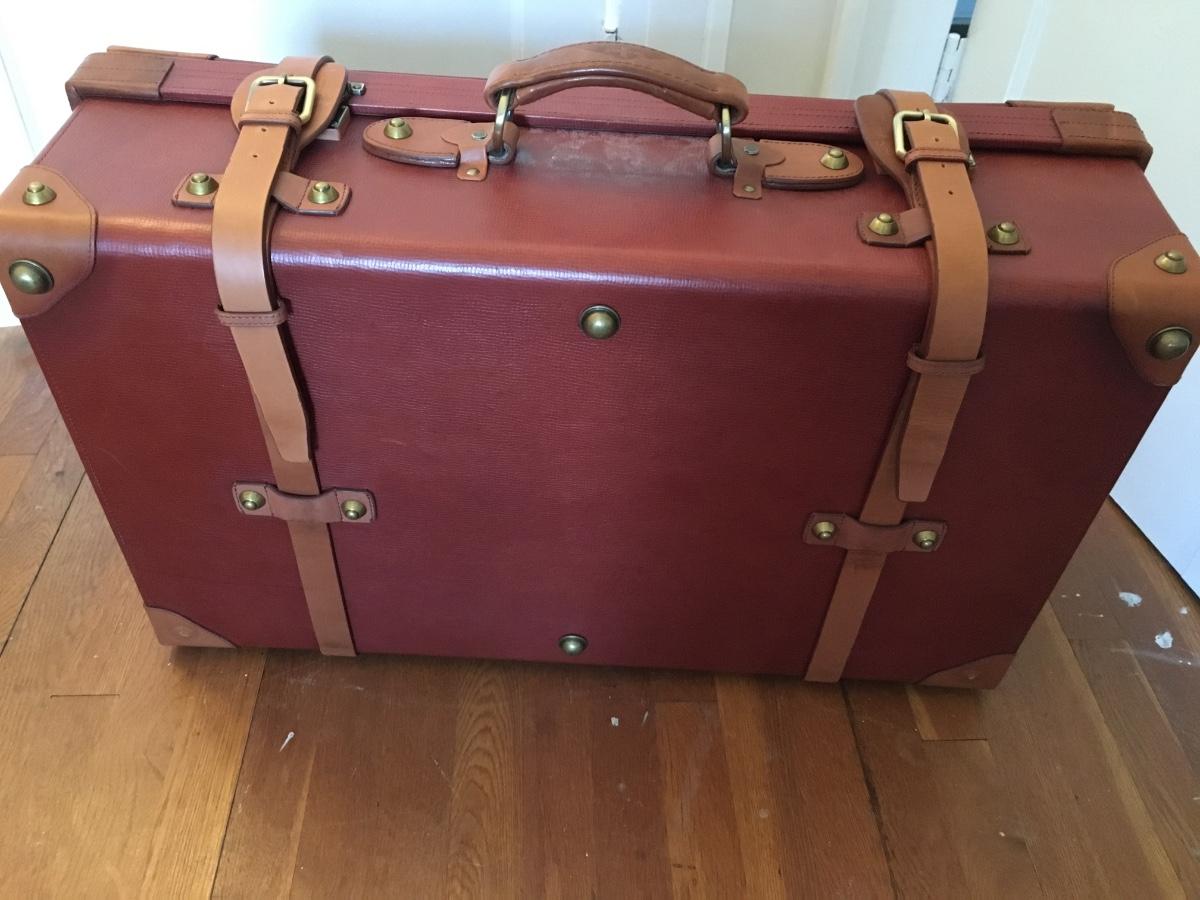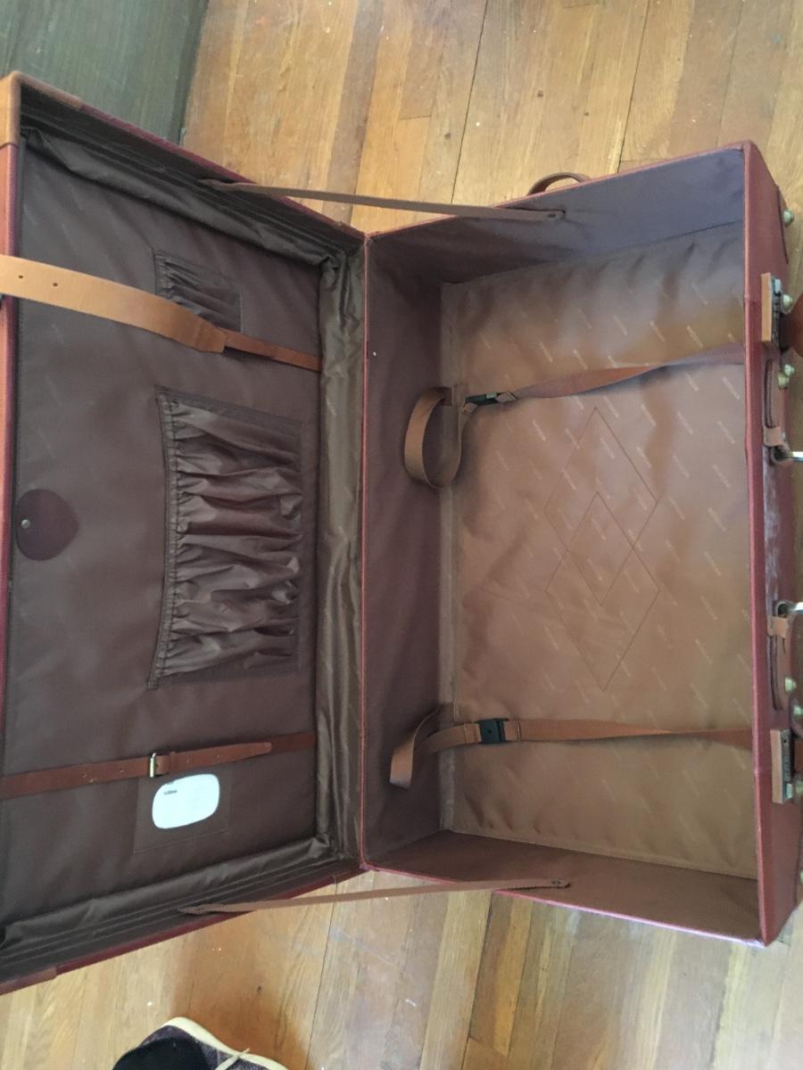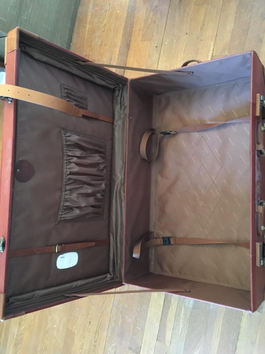 Amazing Morgan suitcase. There are two, adjustable buckle straps to help keep it closed, as well as two combination locks for extra security.