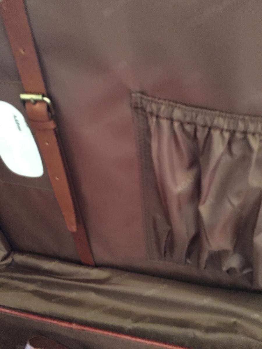 There is a sturdy leather handle, embossed beautifully with our “˜Wings’ logo and securely fastened to the side, so you can carry it with ease and peace of mind that it is fully supported. There is also a smaller strap on another side, to help you carry it however is comfortable to you.Inside there are two fabric straps, two leather buckle straps and two different pocket sizes, really helping to keep safe anything and everything you like to travel with. Has it's own cover to keep it in tip top shape when you have it stowed away in the attic.