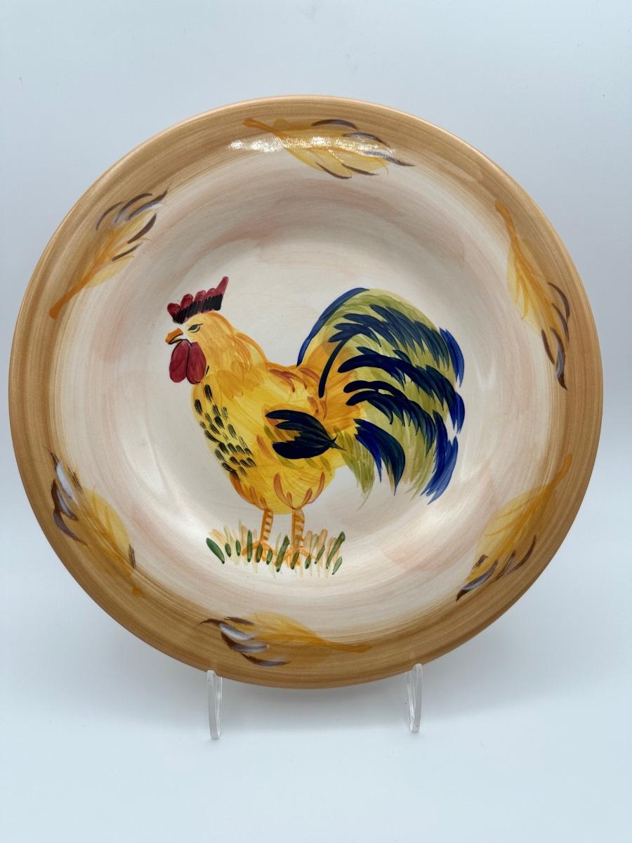 10 ¾” dinner plate adorned with folk art rooster. Cute!