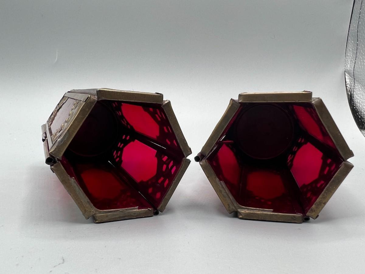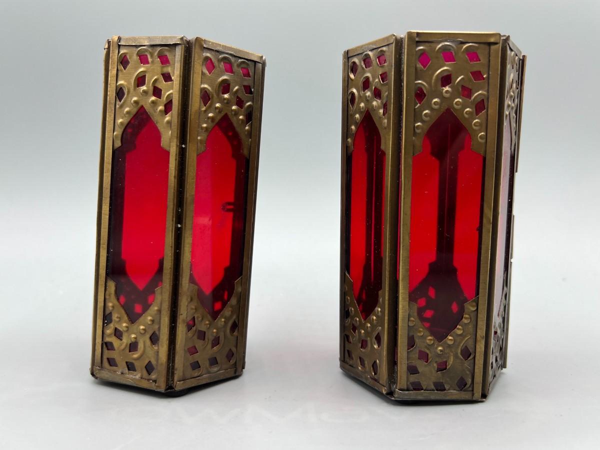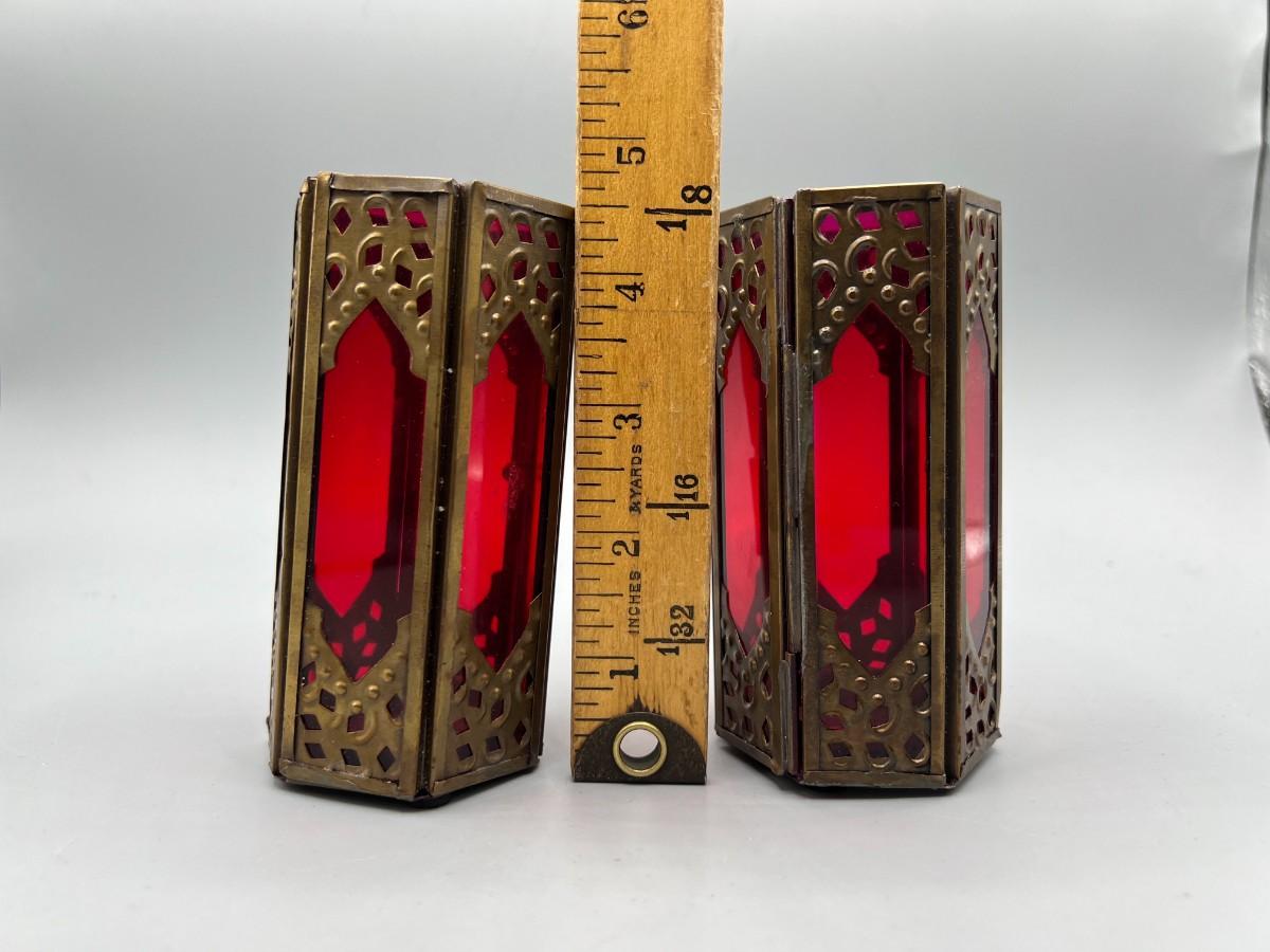 Moroccan Style Brass & Red Glass Tea Light Votive Candle Holders