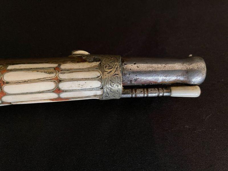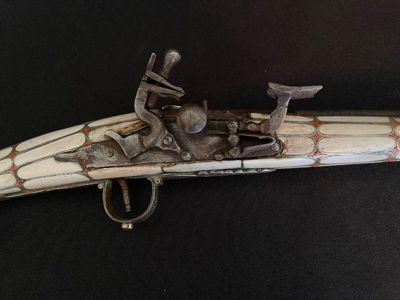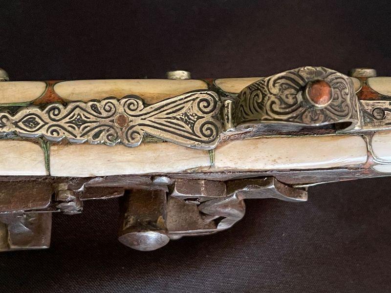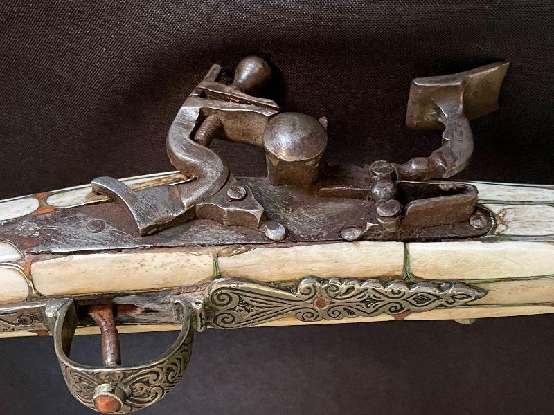 Antique Moroccan Wedding Flintlock inlaid bone & tooled brass
